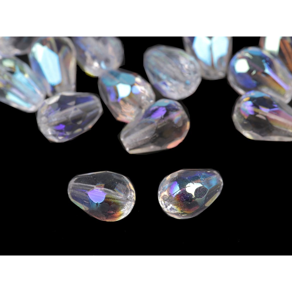 Broušené perle ve tvaru kapek, vás nadchnou především svým vysokým leskem, který vytváří dojem luxusu. Některé kapky mají povrch zušlechtěný irisováním.