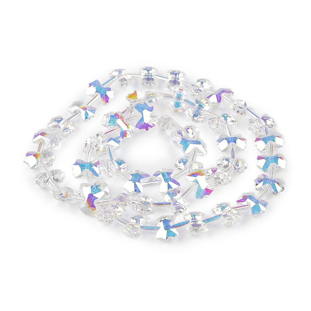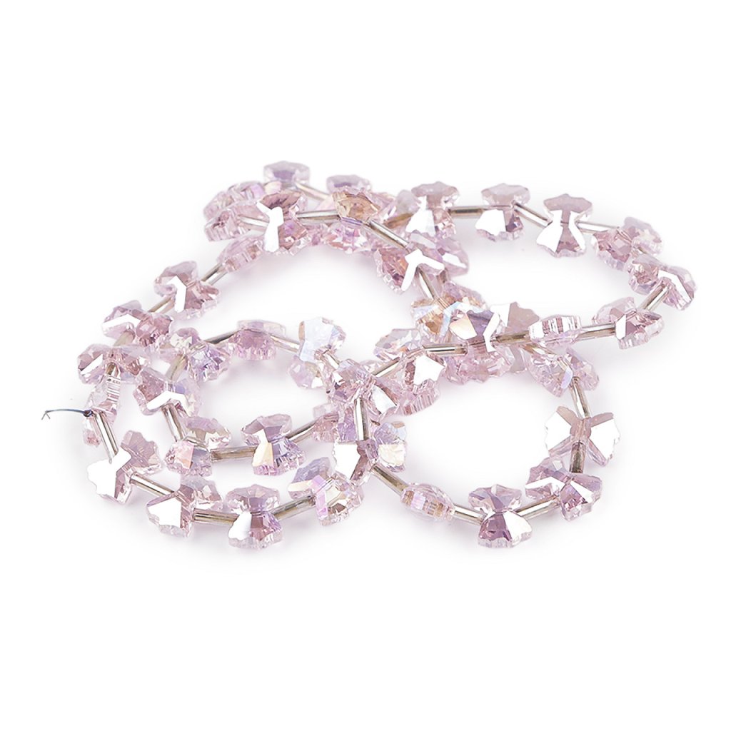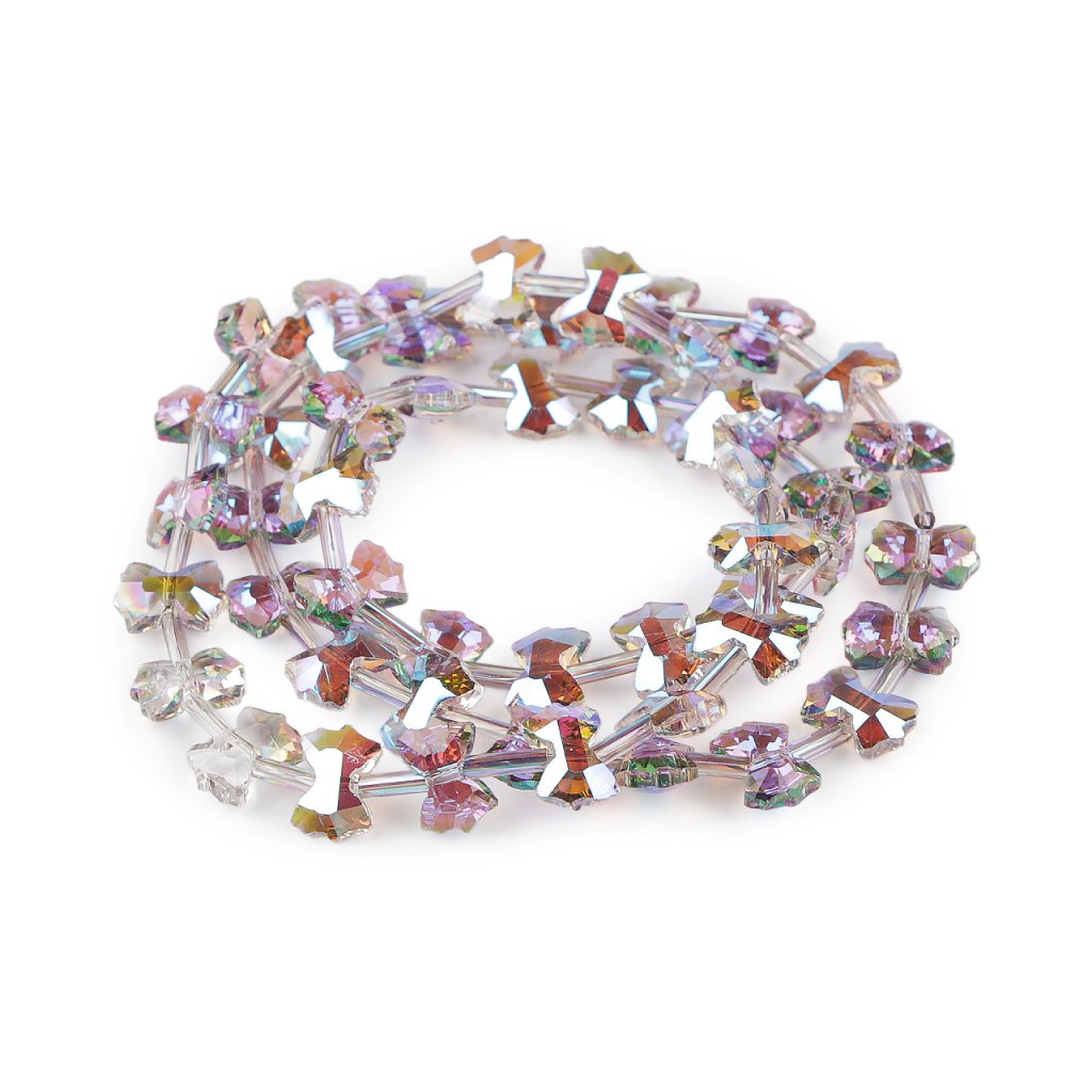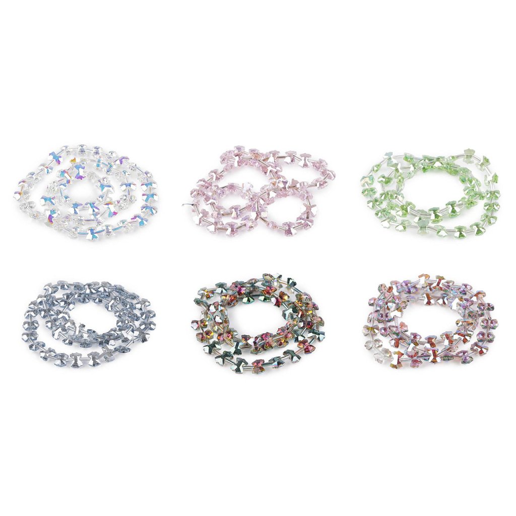 Skleněné broušené korálky mašličky jsou velice zajímavé svými třpytivými odlesky i tvarem. Jsou navlečené na drátku a zkombinované s hladkými tyčkami dlouhými 6 mm. Využijete je na ketlování, do šitých šperků, na drátování apod. Jsou také vhodné pro použití v různých hobby projektech, kde mohou posloužit jako detailní ozdoba. Jejich luxusní vzhled oceníte při tvorbě náušnic, náhrdelníků i náramků. Budou úchvatné i jako detail na prstýnku.