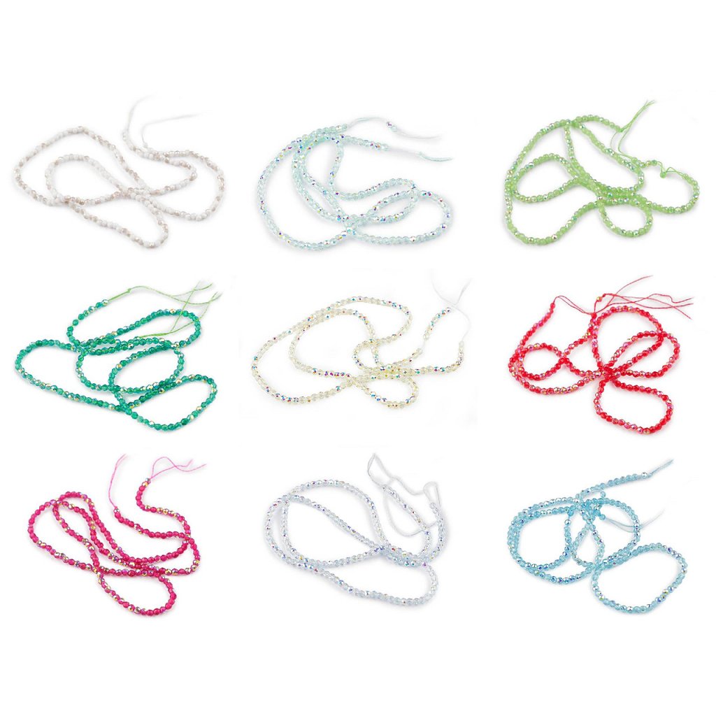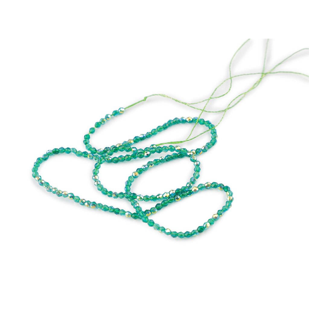 Skleněné korálky broušené ohňovky 2 mm s AB efektem, na šňůrce