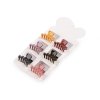 Sada malých barevných skřipců do vlasů je velice oblíbená. Mají pevný stisk, ve vlasech dobře drží. Pomohou vám vykouzlit jednoduché účesy pomocí sepnutí menšího pramínku vlasů i složité překládané drdoly na slavnostní události.