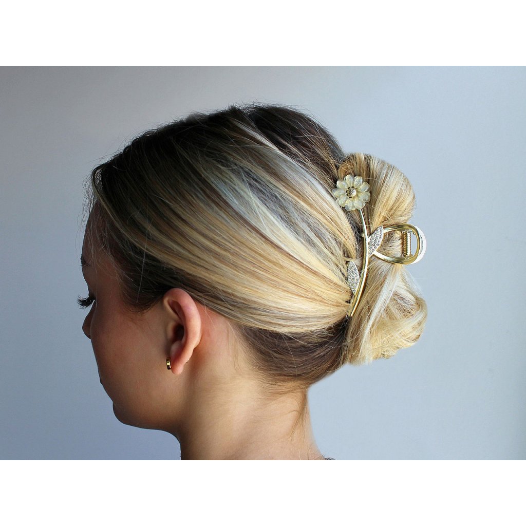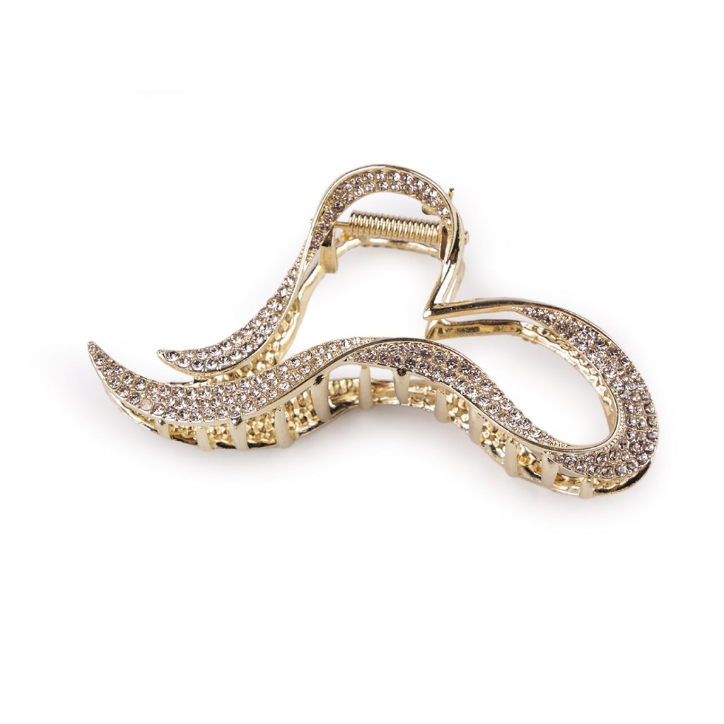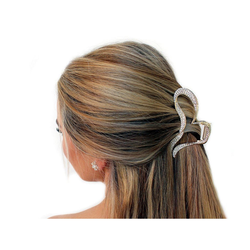 Kovový skřipec do vlasů je bohatě zdobený třpytivými broušenými kamínky, díky nimž je nepřehlédnutelný. Vytvoří slavnostní účes během chvilky, oblíbíte si jej i na všední nošení. Je velice kvalitní, drží přesně na místě díky svému silnému stisku a dlouhých zubů.