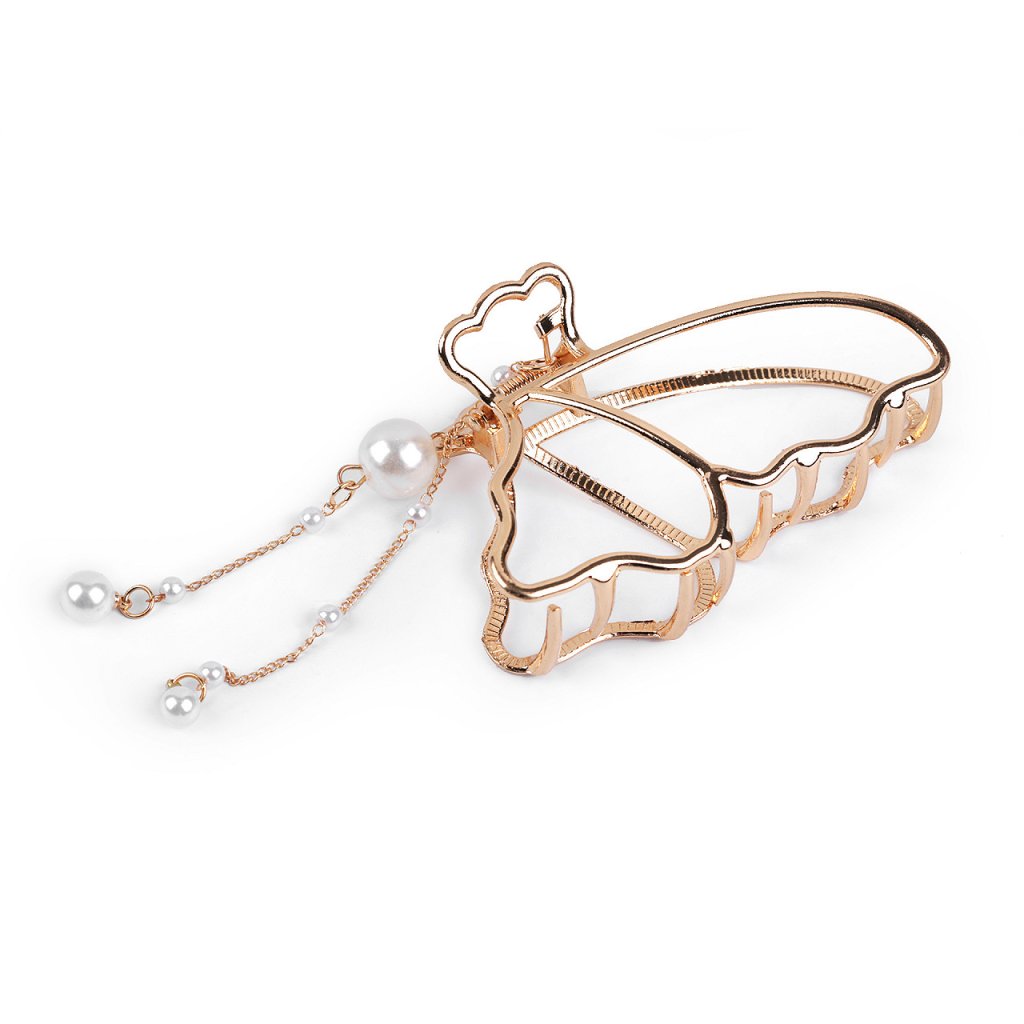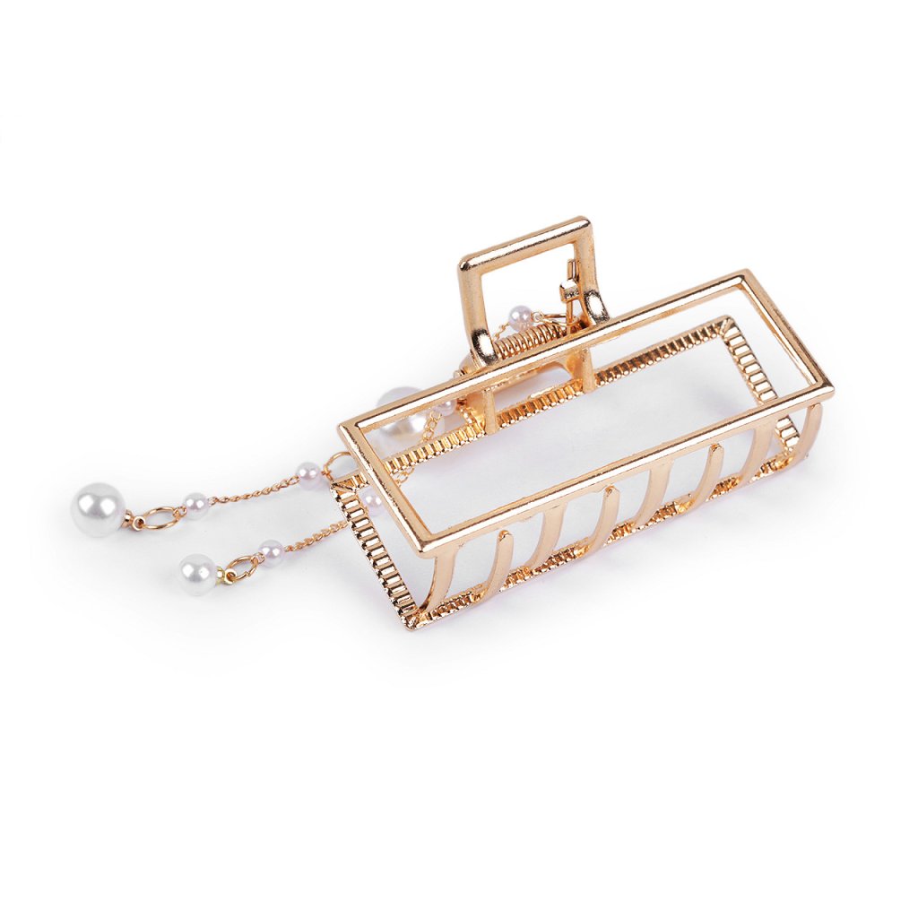 Kovový skřipec do vlasů s perlovou ozdobou vykouzlí účes během chvilky. Ocení jej dívky, které nemají rády gumičky. Perly jsou připevněné k řetízkům, působivě se houpou. Skřipec drží přesně na místě díky svého silného stisku a dlouhých zubů. Má lesklý povrch.