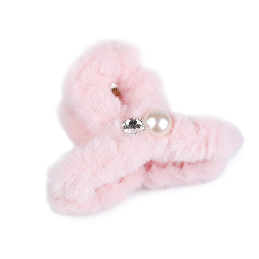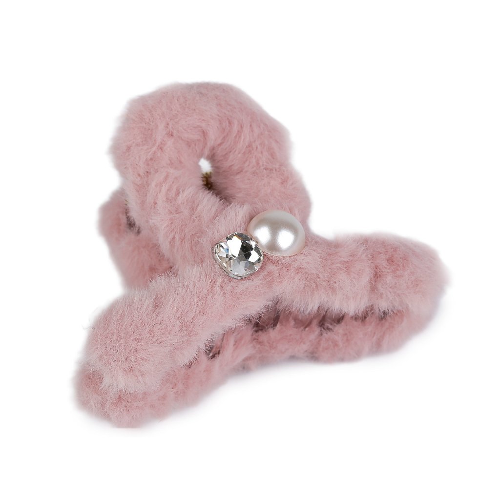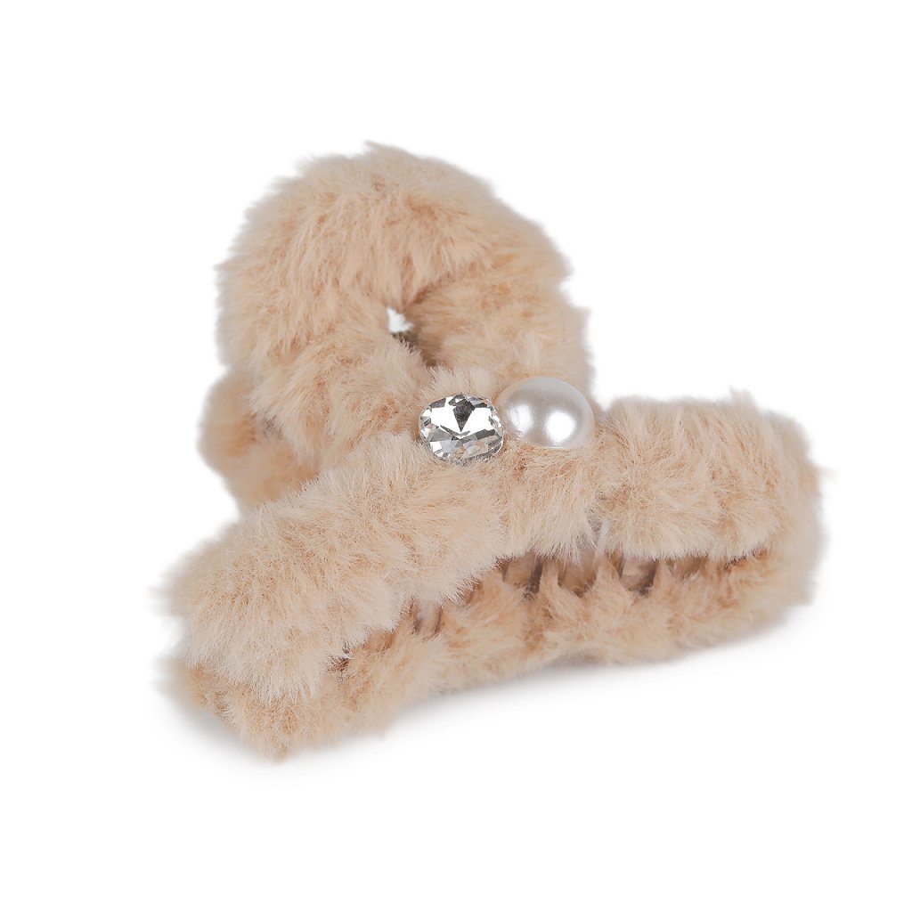 Skřipec do vlasů kožešinový s perlou a broušeným kamenem