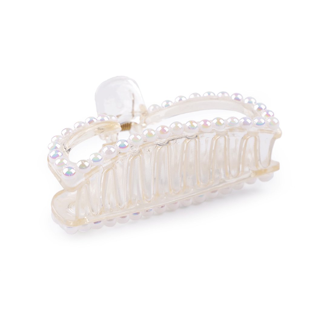 Skřipec do vlasů s perlovým designem vytvoří poutavý slavnostní účes během chvilky. Drží přesně na místě díky svému silnému stisku a dlouhým zubů. Má lesklý perlový povrch s AB efektem.
