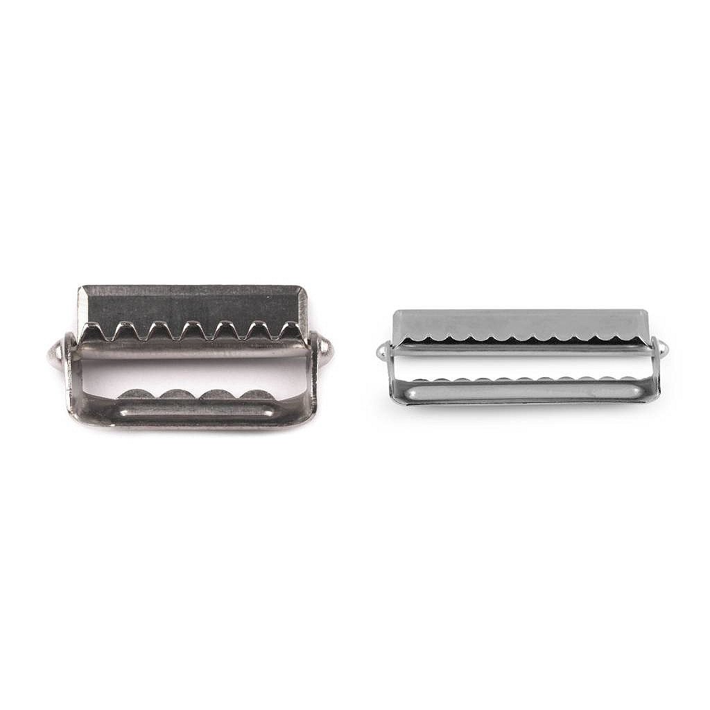 Přezky jsou vyrobeny z kvalitní oceli. Používají se k regulaci délky šlí a díky zoubkům pevně drží.