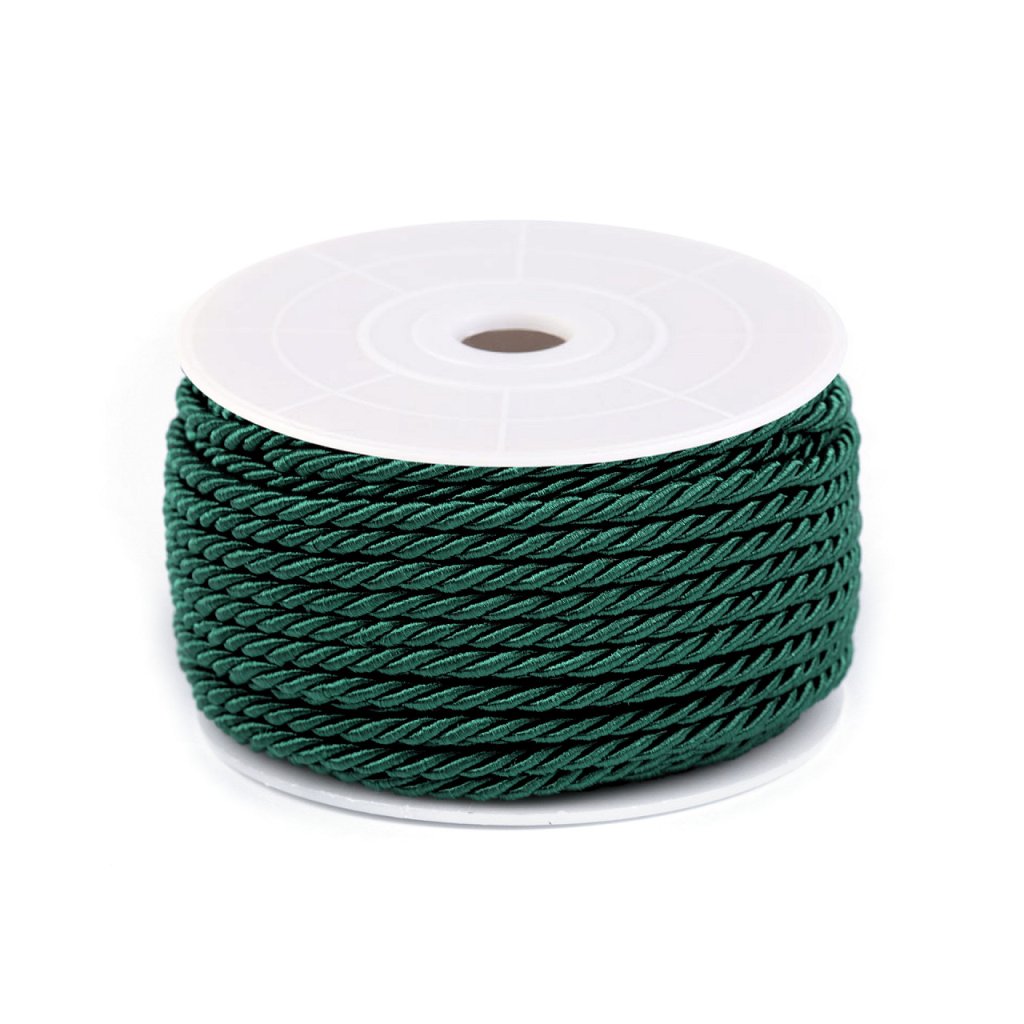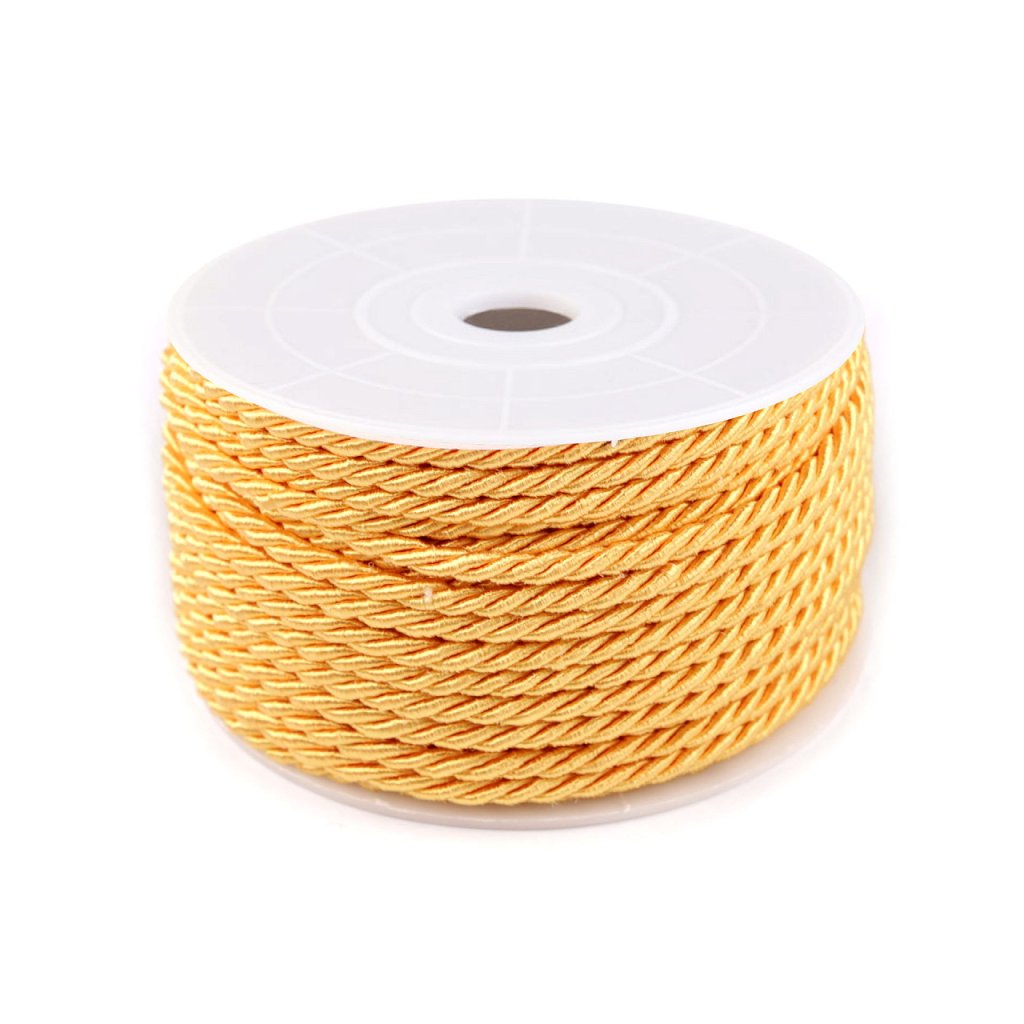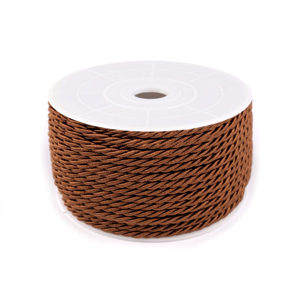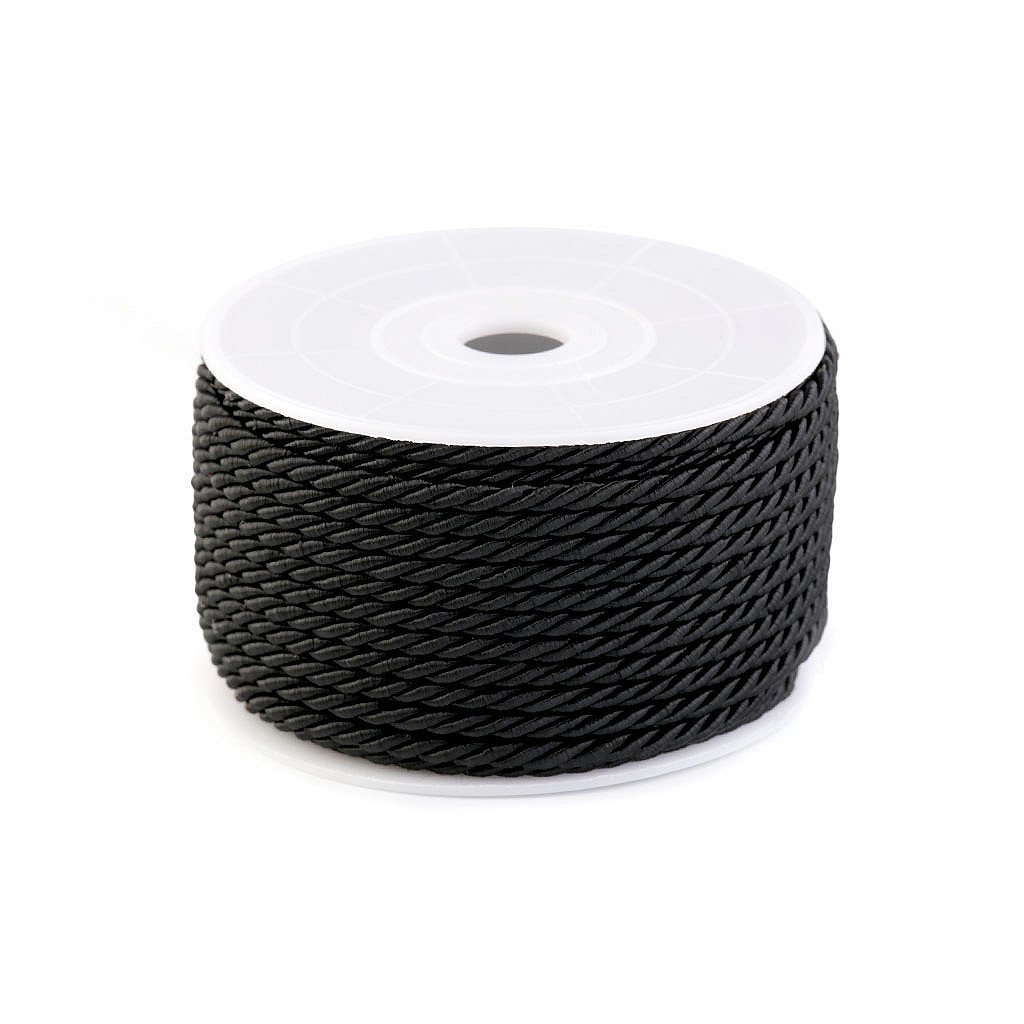 Kroucená šňůra zaujme svým vysokým leskem. Je pevná, složená ze 3 provázků, a netřepí se. Jednotlivé provázky mají bavlněné jádro opletené polyesterem a viskózou, která způsobuje poutavý lesk.Použití: Šňůra se převážně používá v textilním průmyslu, v čalounictví apod. Její vlastnosti oceníte také při výrobě náramků nebo náhrdelníků. Své využití najde také jako dekorační či funkční materiál bytových doplňků.