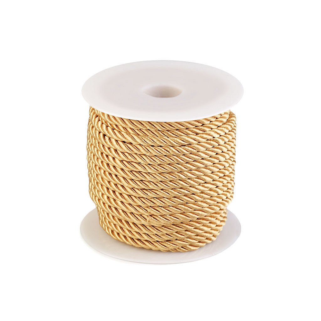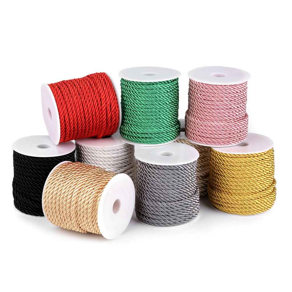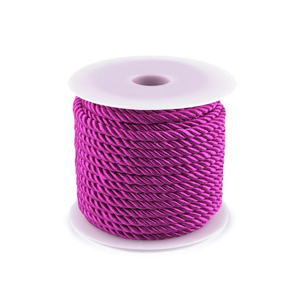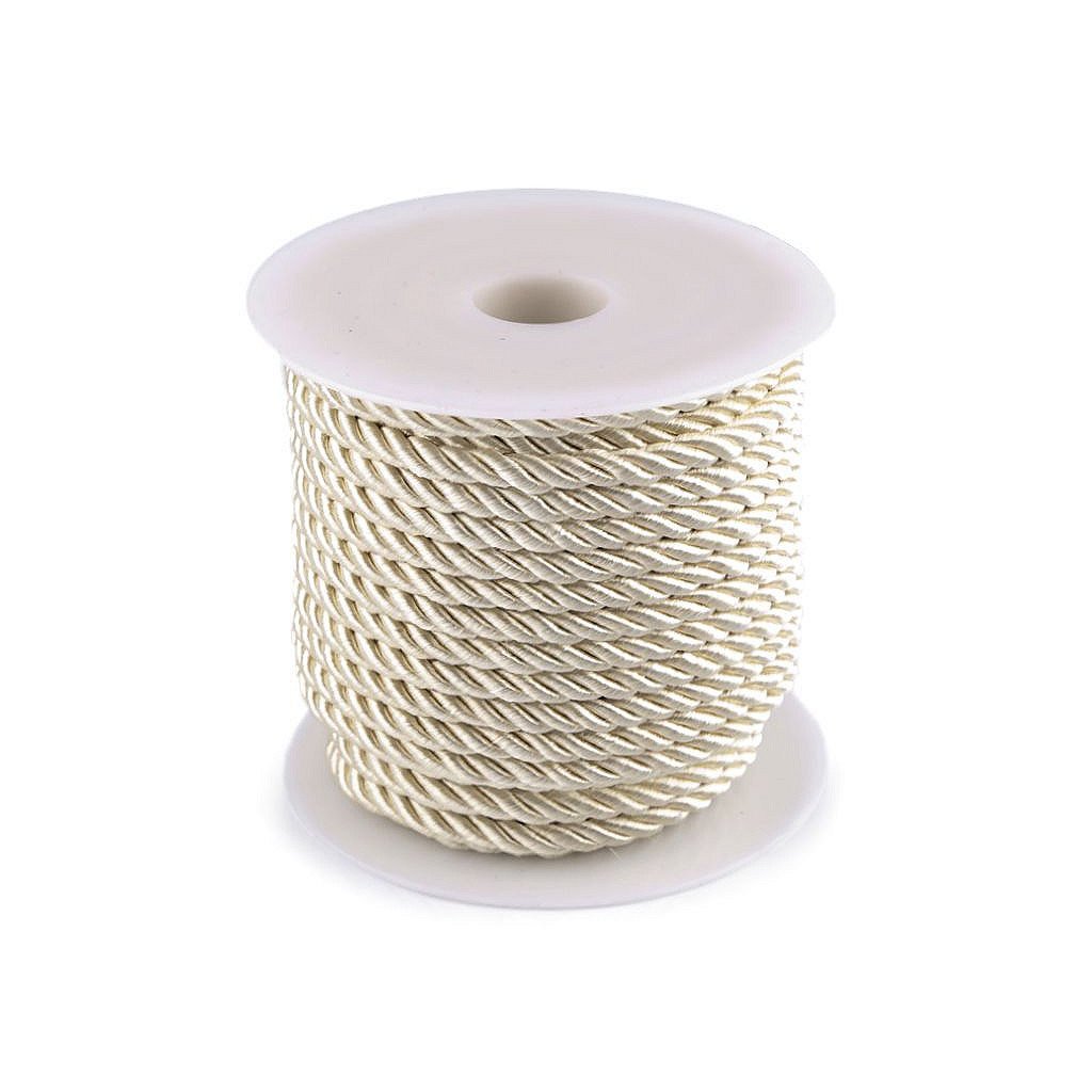 Kroucená šňůra zaujme nejen vysokým leskem, ale také její pevností. Je spletená ze 3 provázků. Jednotlivé provázky mají bavlněné jádro opletené polyesterem a viskózou, která způsobuje poutavý lesk.Použití: Šňůra se převážně používá v textilním průmyslu, v čalounictví apod. Její vlastnosti oceníte také při výrobě náramků nebo náhrdelníků. Své využití najde také jako dekorační či funkční materiál bytových doplňků.