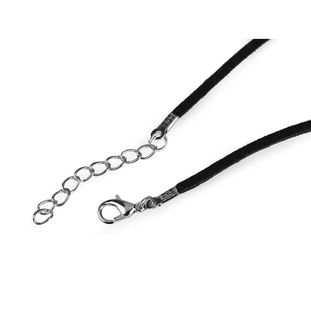 Šňůrka určená k zavěšení přívěsků. V případě, že přívěsek nebude možno díky koncovce navléci, tak lze kleštěmi pružinovou koncovku rozevřít, navléci přívěsek a opět koncovku uzavřít.U černých šňůrek je potřeba zamáčknout kleštičkami konce pružinek, šňůrky se lehce vyvlékají.