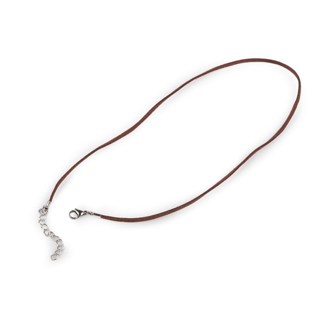 Plochá šňůrka na krk z matné eko kůže, má připevněné kompletní zapínání z nerezové oceli na karabinku. Stačí pouze navléct přívěsek a vyrazit. Samozřejmostí tohoto hotového výrobku je prodlužovací řetízek. Délka 46 cm + 5 cm adjustační řetízek. Karabinka 7 x 12 mm, šňůra je široká 3 mm.