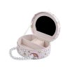 Šperkovnice ve tvaru kabelky s potiskem jednorožce má velice kvalitní a precizní provedení. Ochrání šperky před nepříznivými vlivy okolí, jako je světlo nebo vlhkost. Má perlové ucho k přenášení, zapíná se na perlu a pružné poutko. Uvnitř má 1 velkou a 2 malé přihrádky, oddíl na prsteny a zrcátko. Potisk je ze všech stran.