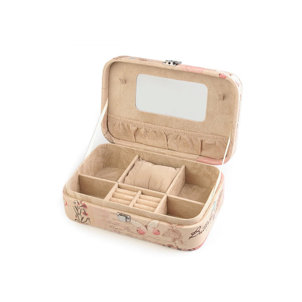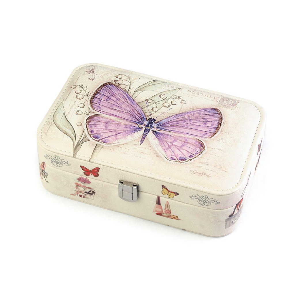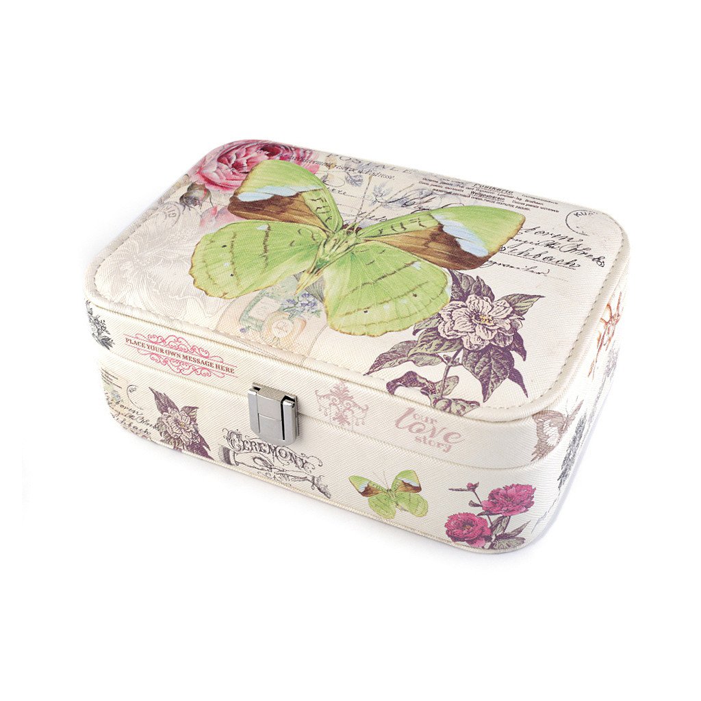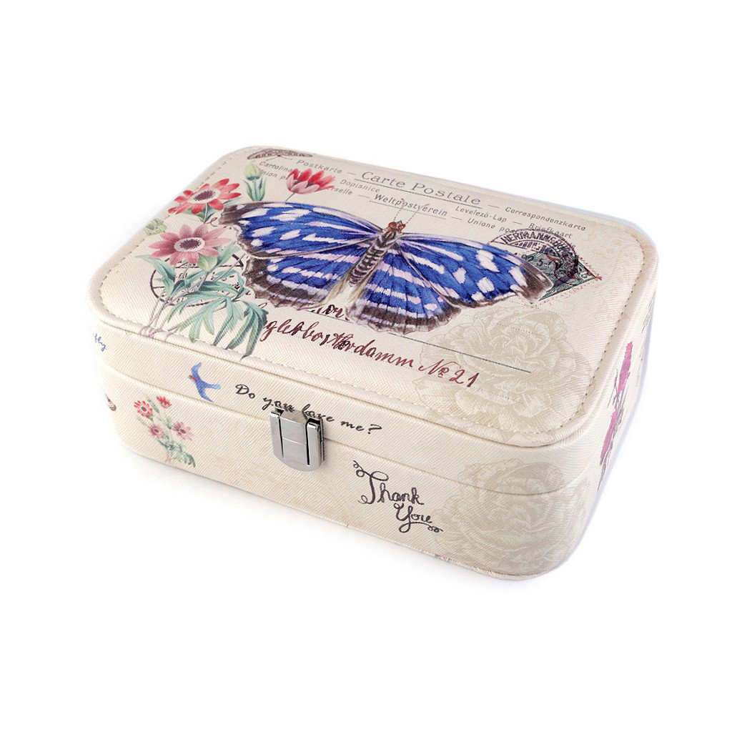 Elegantní provedení z eko kůže s potiskem motýlů jako ze starého atlasu nadchne každou ženu. Šperkovnice působí vintage dojmem, má kovové zapínání. Ochrání vaše šperky před nepříznivými vlivy okolí, jako je světlo nebo vlhkost.