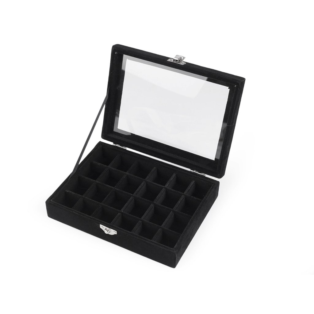 Šperkovnice se skleněným průhledem sametová 15x20x5 cm