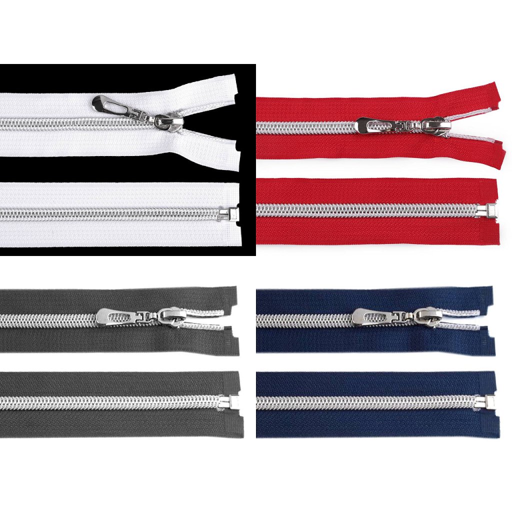 Dělitelný spirálový zip se stříbrnými zoubky využijete jako zapínání na bundy, kabáty, mikiny i sportovní tašky. Jezdec zipu je z nemagnetického kovu, očko, které ho spojuje se zipem je magnetické.