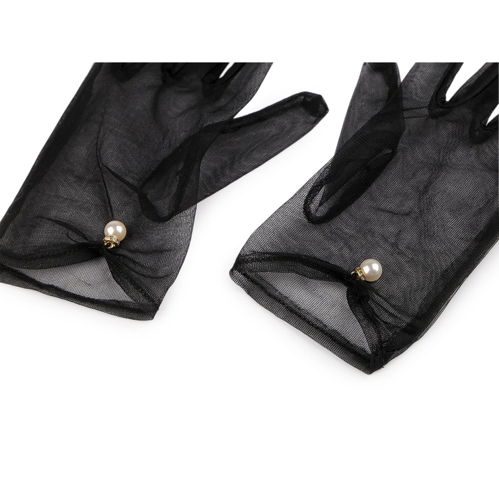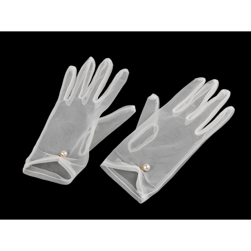 Společenské tylové rukavice využijete na ples nebo na čaj o páté, skvěle doplní i maškarní kostým nebo stylovou retro párty. Jsou velice elegantní, ozdobené přívěskem perly s rondelkou s broušenými kamínky. Jejich krátký střih je moderní a praktický.