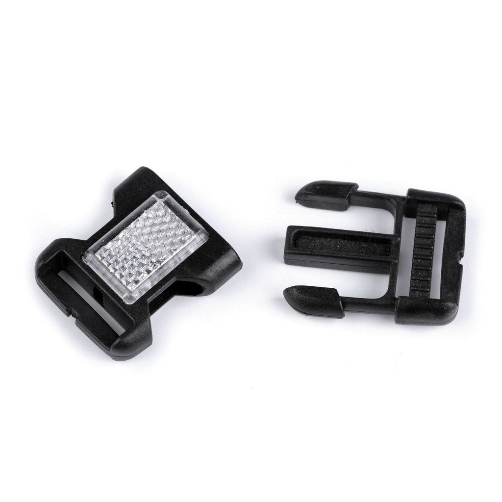 Plastová spona (trojzubec) má odrazku pro lepší viditelnost za šera, deště či tmy. Je vhodná k výrobě ledvinkových opasků, brašen, batohů apod. Využijete ji také jako zapínání pracovních lacláčů.