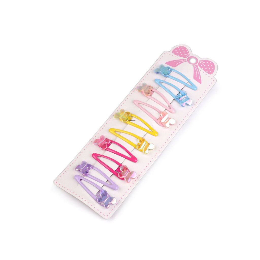 Pukačky s ozdobou motýlka poutavě ozdobí účes malých i větších parádnic. Motýl má povrchovou úpravu s AB efektem. Sponky jsou pevné, vyrobené z kvalitního materiálu, který dlouho drží svůj tvar, funkčnost i barvy.