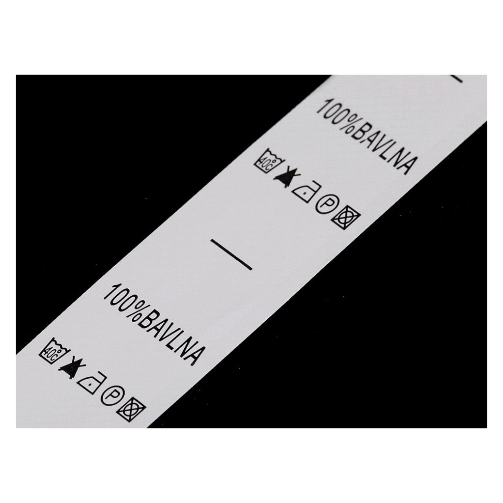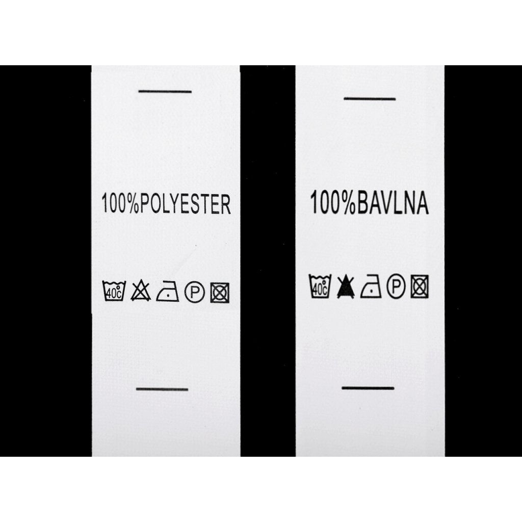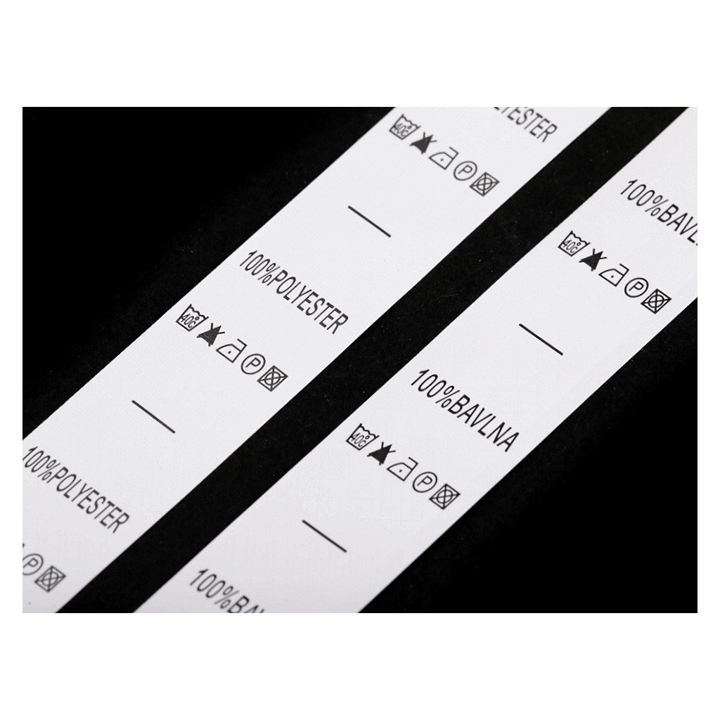 Štítky se složením a údržbou jsou vhodné pro šicí dílny. Jednoduše je všijete do oděvu. Lze je prát.
