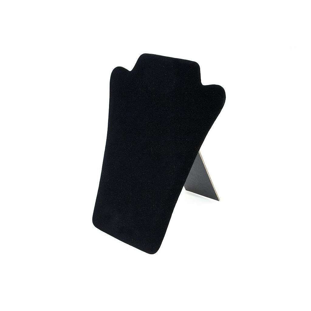 Lehký, snadno přemisťovatelný plastový stojan na šperky je potažený sametem. Náhrdelník samostatně umístěný na stojanu, zvlášť s tmavým podkladem, vždy upoutává pozornost. Manipulace se stojanem je velmi snadná, takže můžeme každý den prezentaci měnit a vzbudit zájem.