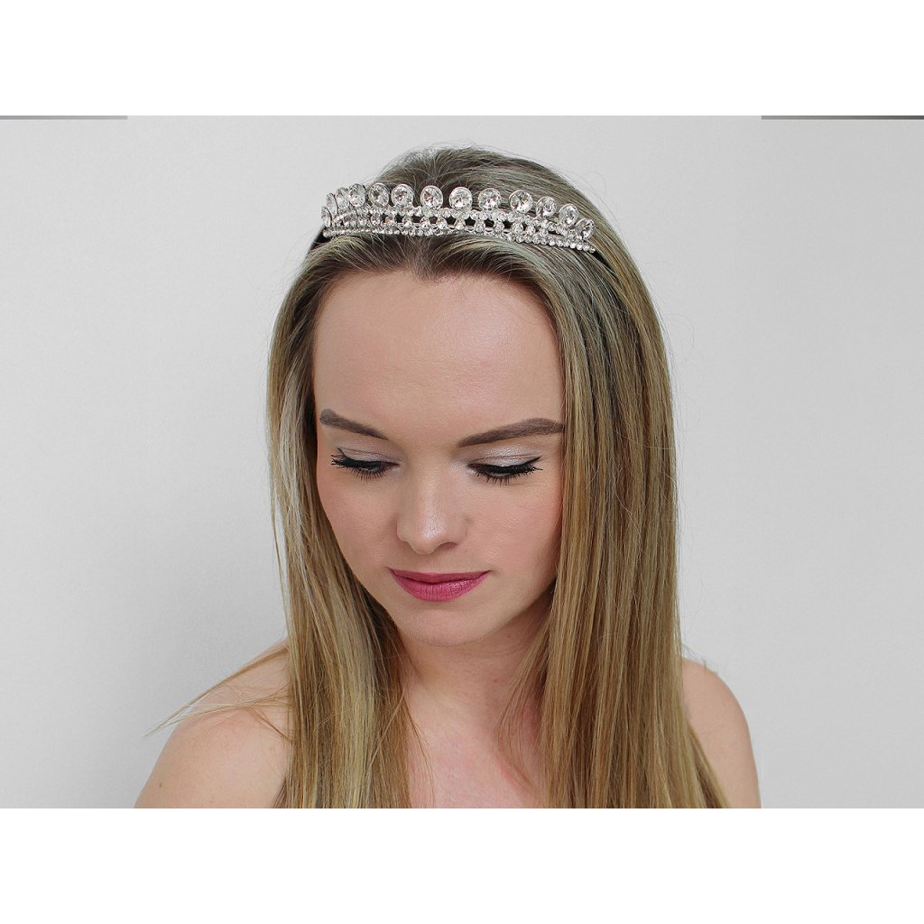 Štrasová korunka neboli tiára je ozdobená skleněnými broušenými kamínky. Díky vysokého třpytu vypadá velmi luxusně. Hodí se nejenom jako doplněk do vlasů pro nevěsty a družičky, ale také na slavnostní příležitost jako jsou různé plesy, party, večírky, narozeniny apod.