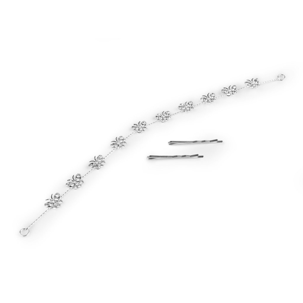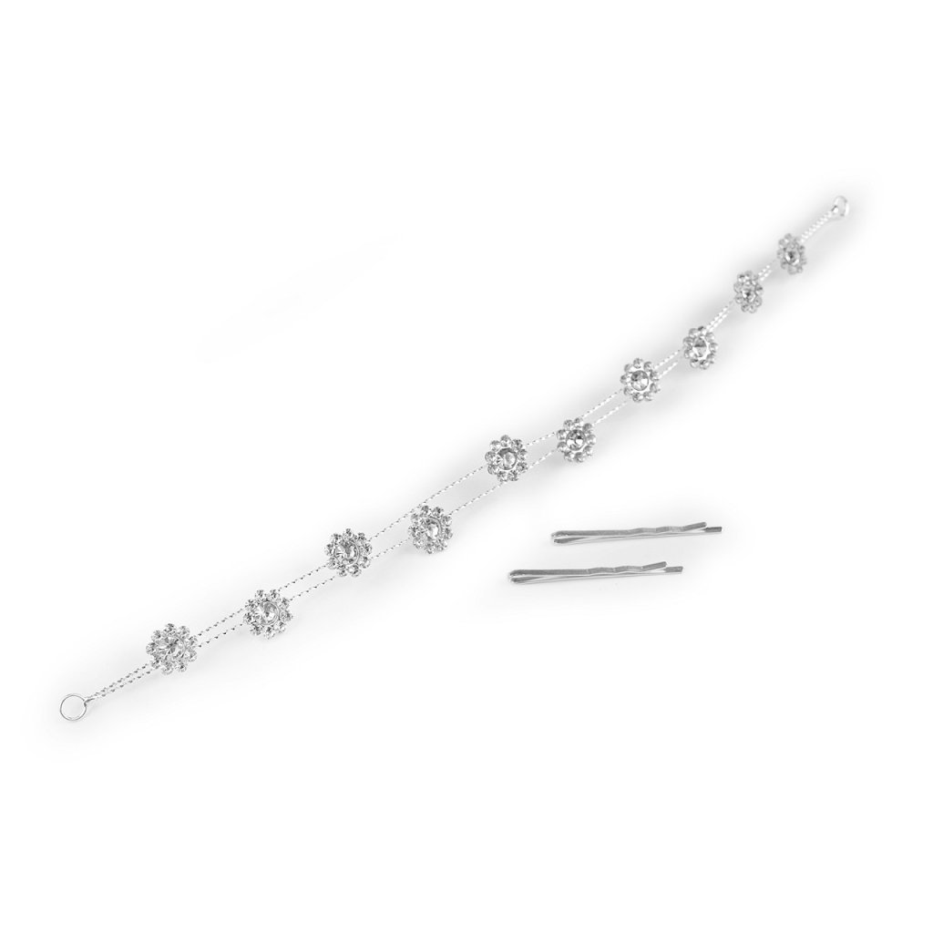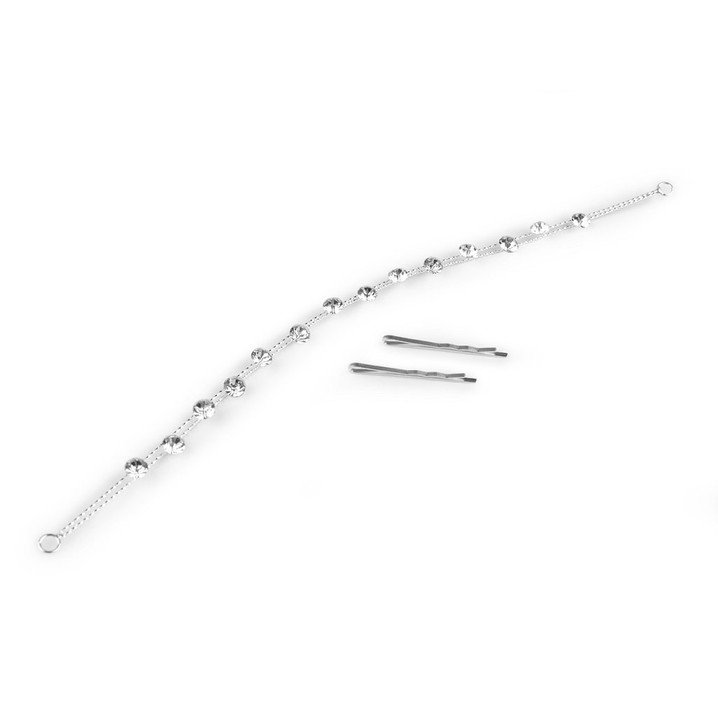 Štrasová ozdoba do vlasů je velice elegantní, v účesu nepřehlédnutelná. Díky ozdobám ze skleněných broušených kamínků se na dálku efektně třpytí. Ozdoba je ohebná, dá se skvěle tvarovat podle potřeby. Nasadí se na vlasy pomocí vlasových sponek, stuhy nebo pruženky, kterou upevníte do oček (Ø 5 mm) na koncích. Je vhodná do složitých účesů jako jsou různé drdoly nebo překládané účesy, kde se konce korunky schovají pod vlasy. Využijete ji jako doplněk na svatbu, do divadla, na večírky nebo na ples.