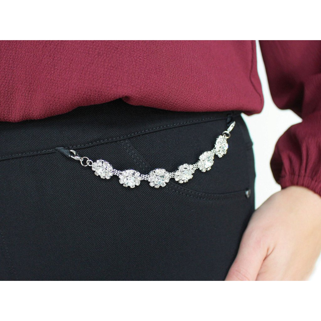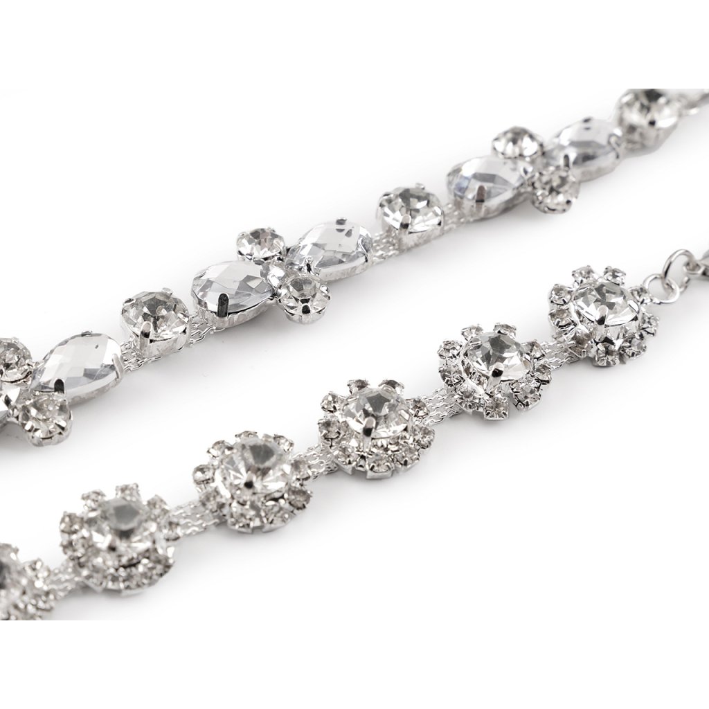 Štrasová ozdoba má na obou koncích mini karabinky umožňující snadné připevnění k materiálu. Můžete ji připnout na oděvy i doplňky, např. plesové šaty, halenky, saka, psaníčka, kabelky, čelenky i boty. Ozdoba působí luxusně a elegantně.