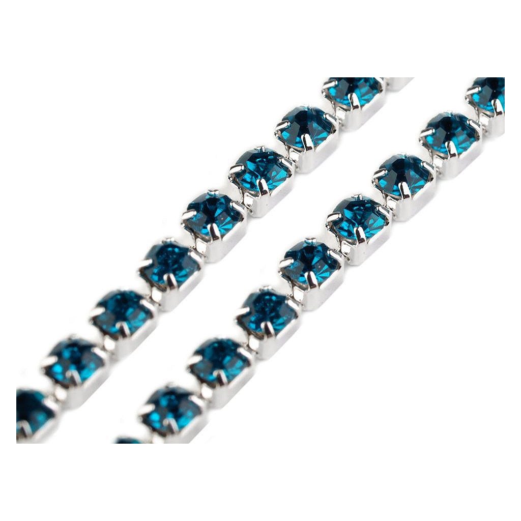 Luxusní bižuterní řetízkovou bortu zdobí třpytivé kamínky, které jsou vsazené do kovových plíšků.
