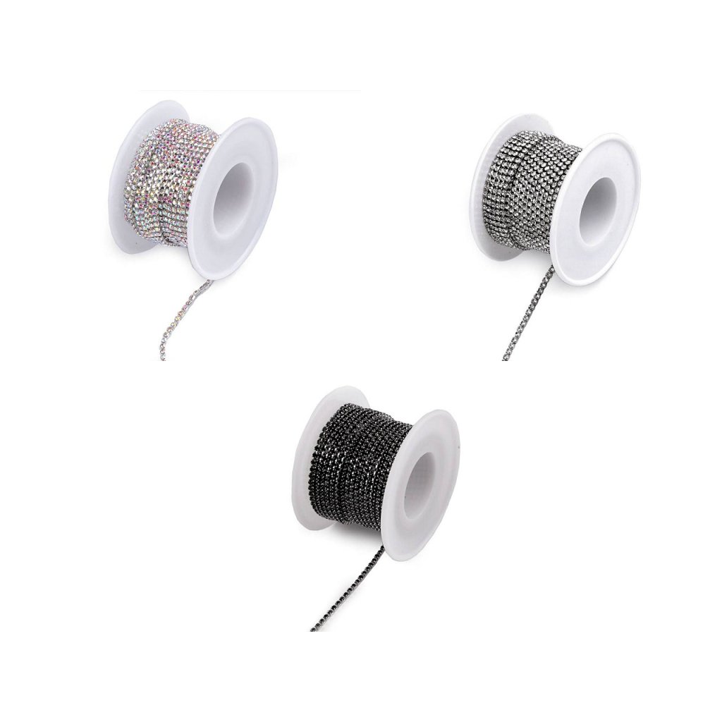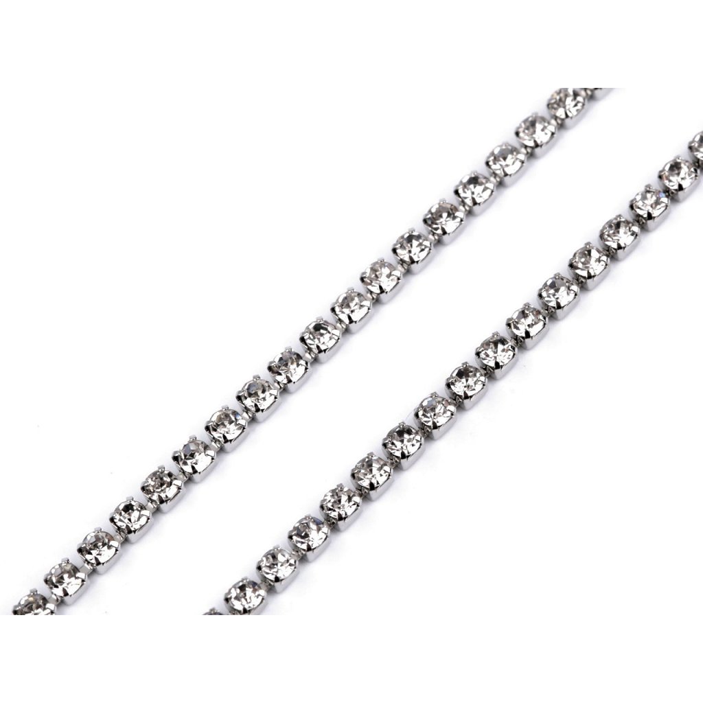 Luxusní bižuterní řetízkovou bortu zdobí třpytivé broušené kamínky vsazené do kovových kotlíků.