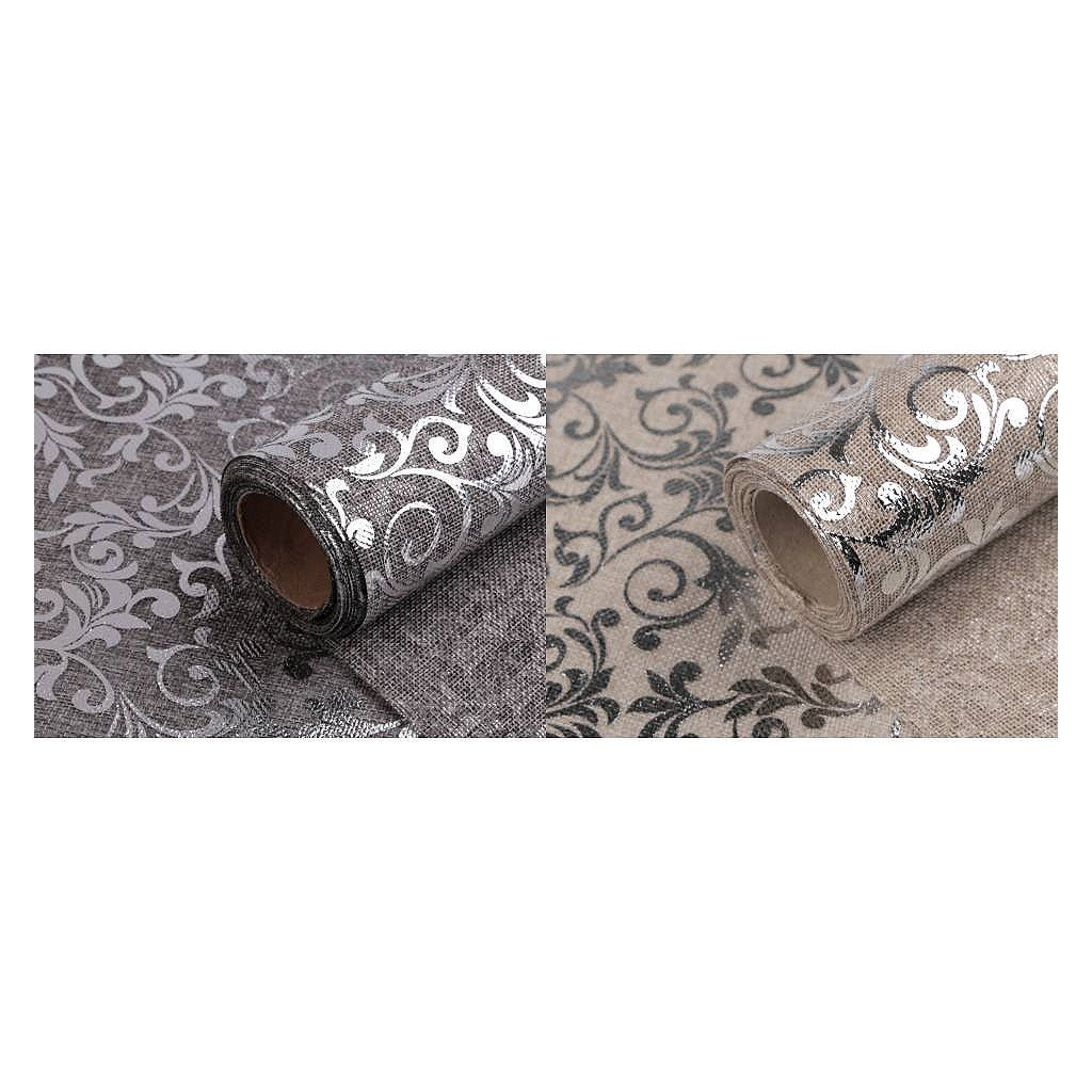 Imitaci juty zdobí lesklé ornamenty. Textilie není obšitá.