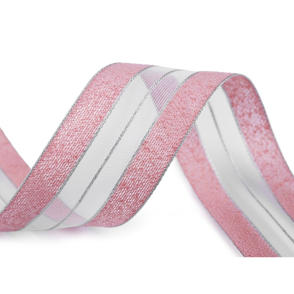 Efektní stuha má transparentní střed, který je spolu s okraji protkán lurexem. Dobře drží tvar.
