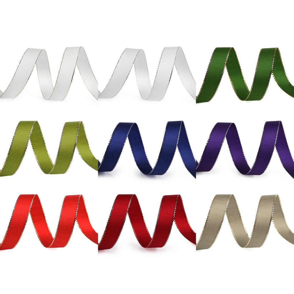 Taftová stuha s lurexem vás zaujme svým jemným elegantním třpytem. Lurex je po stranách, stuha je ideální pro zdobení dárkových balení, tvorbu ozdob na sváteční stůl, svatební dekorace a různé kreativní projekty.