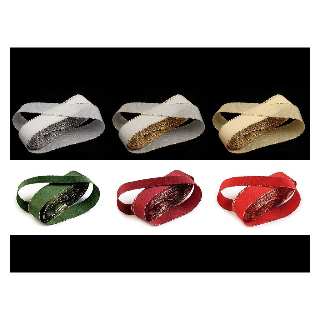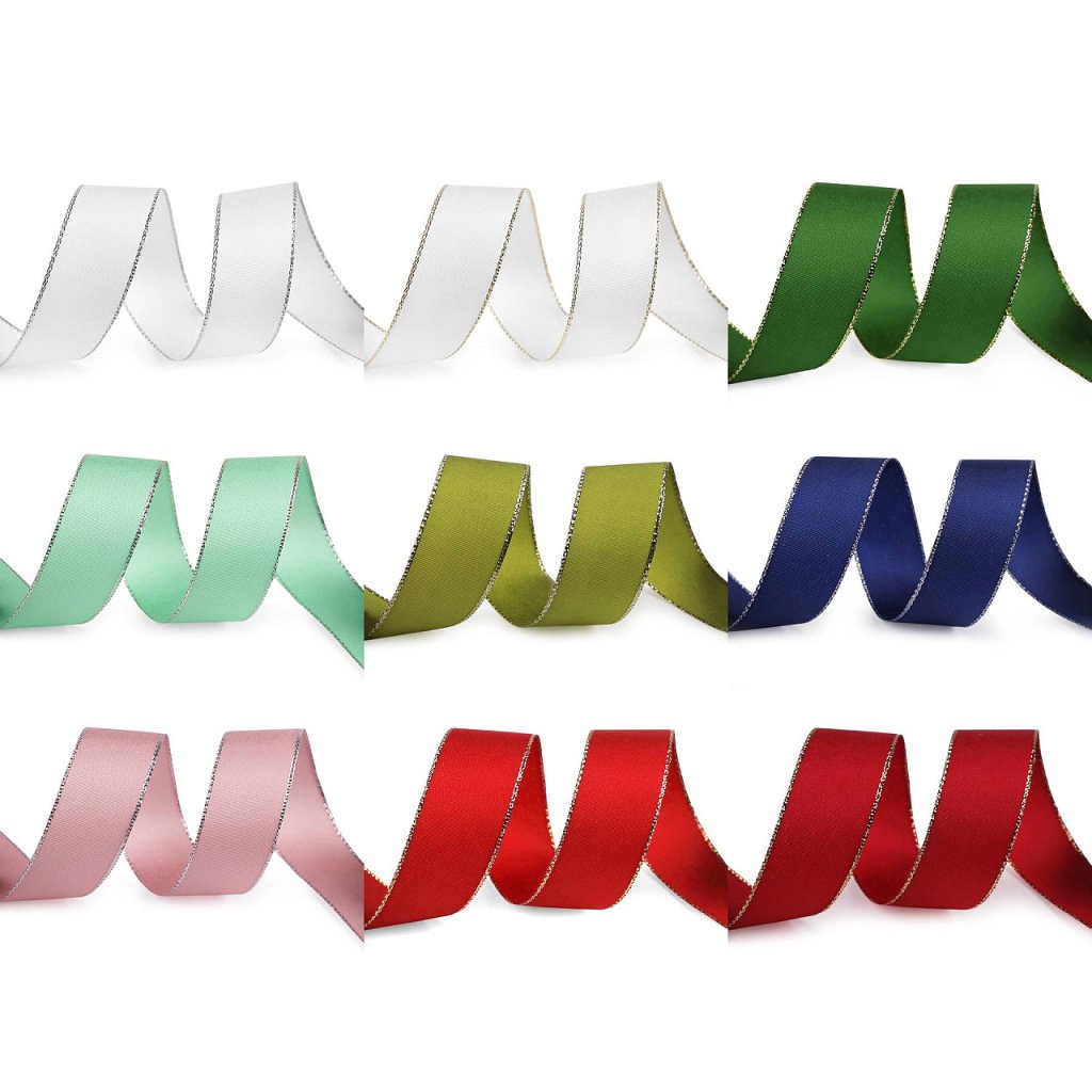Taftová stuha s lurexem vás zaujme svým jemným elegantním třpytem. Lurex je po stranách, stuha je ideální pro zdobení dárkových balení, tvorbu ozdob na sváteční stůl, svatební dekorace či různé kreativní projekty.