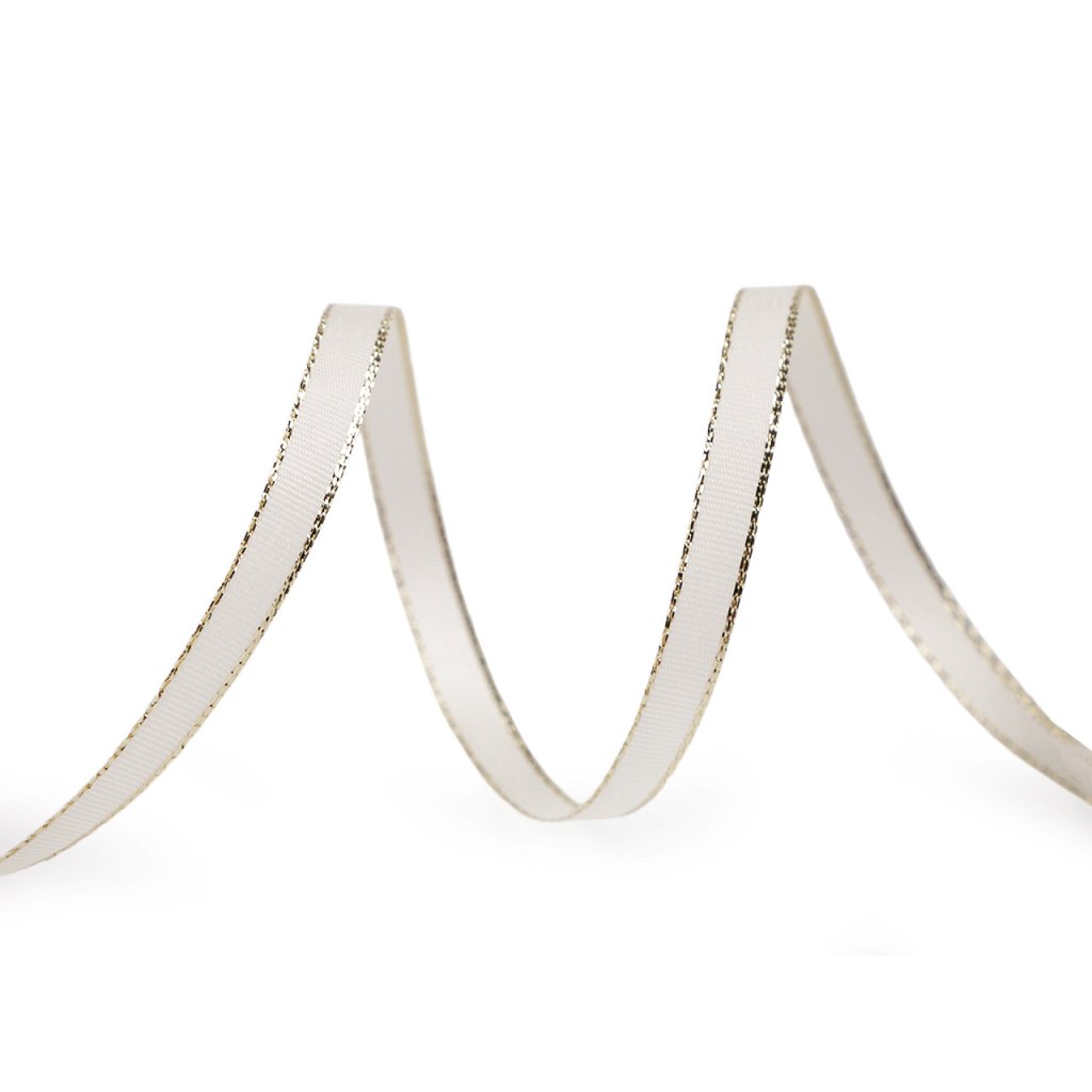 Taftová stuha s lurexem každého zaujme svým jemným elegantním třpytem. Lurex je po stranách, stuha je ideální pro zdobení dárkových balení, tvorbu ozdob na sváteční stůl, svatební dekorace a různé kreativní projekty.
