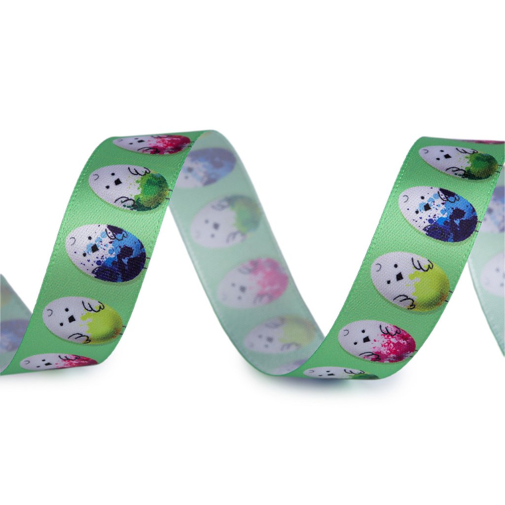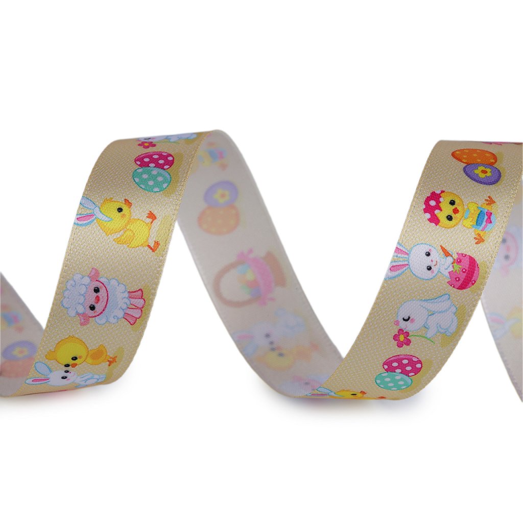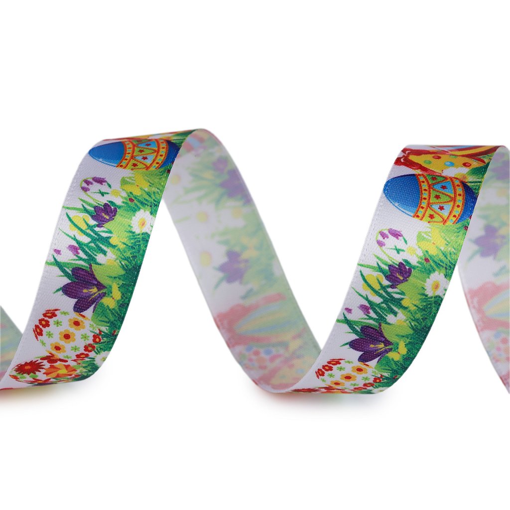 Dekorační stuha s poutavým velikonočním potiskem. Digitální potisk je jednostranný.