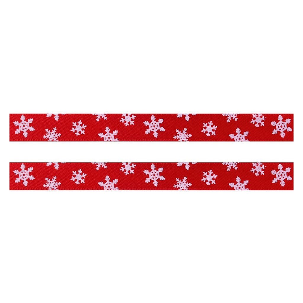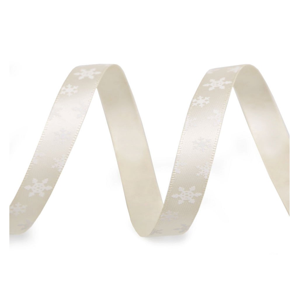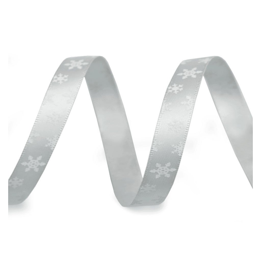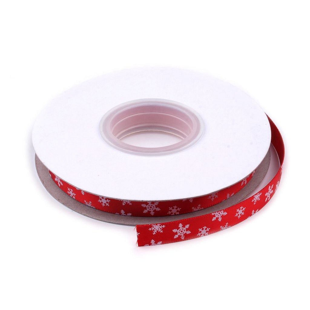 Lesklou atlasovou stuhu zdobí potisk vloček, který je jednostranný.