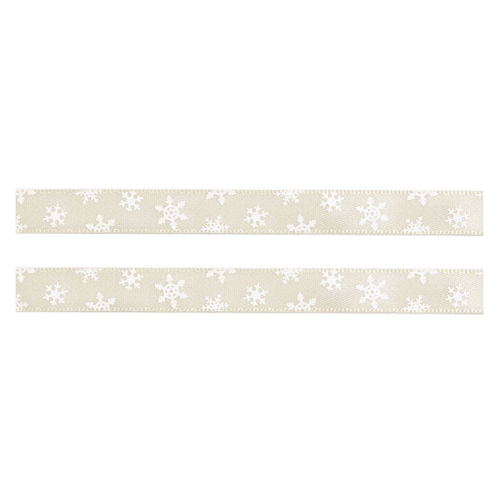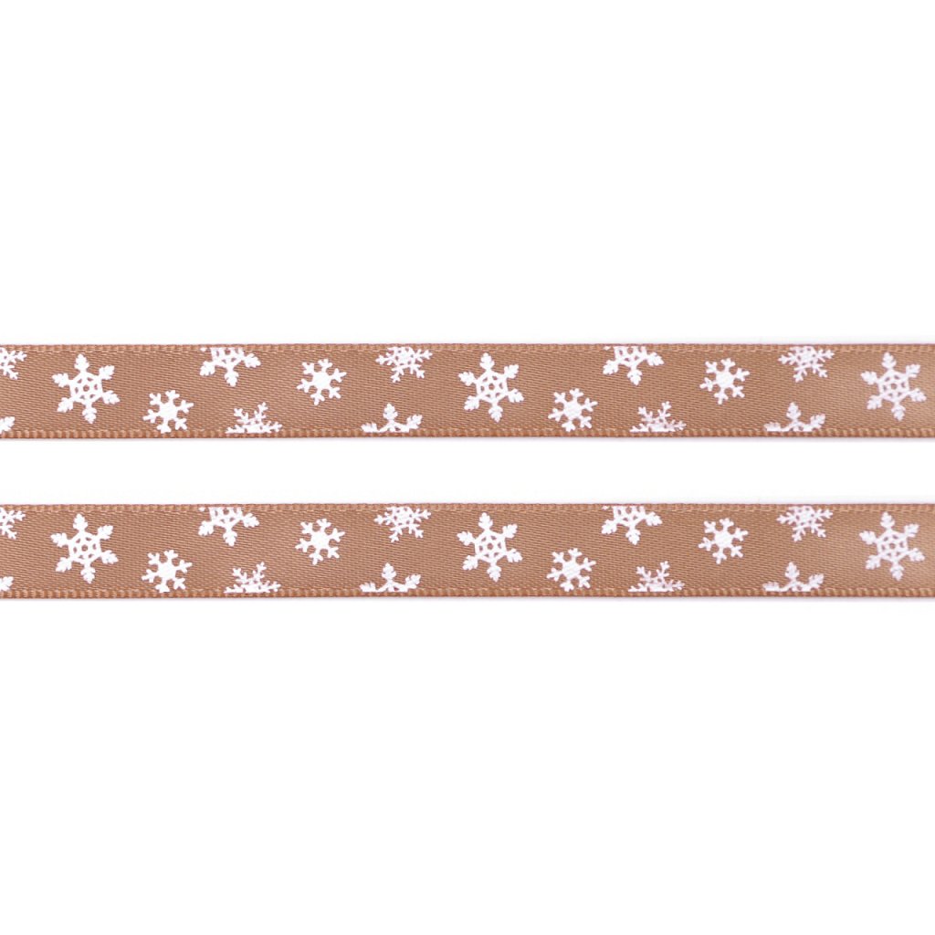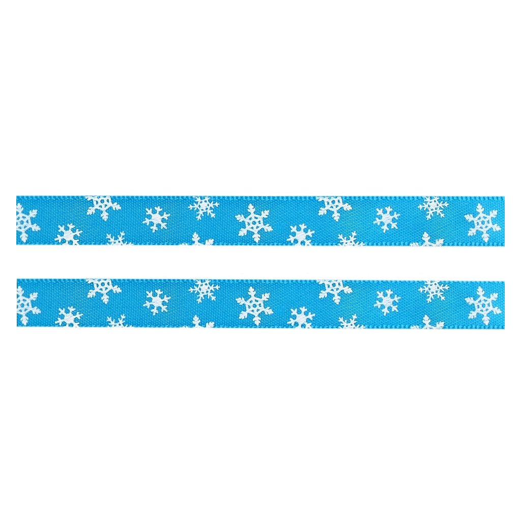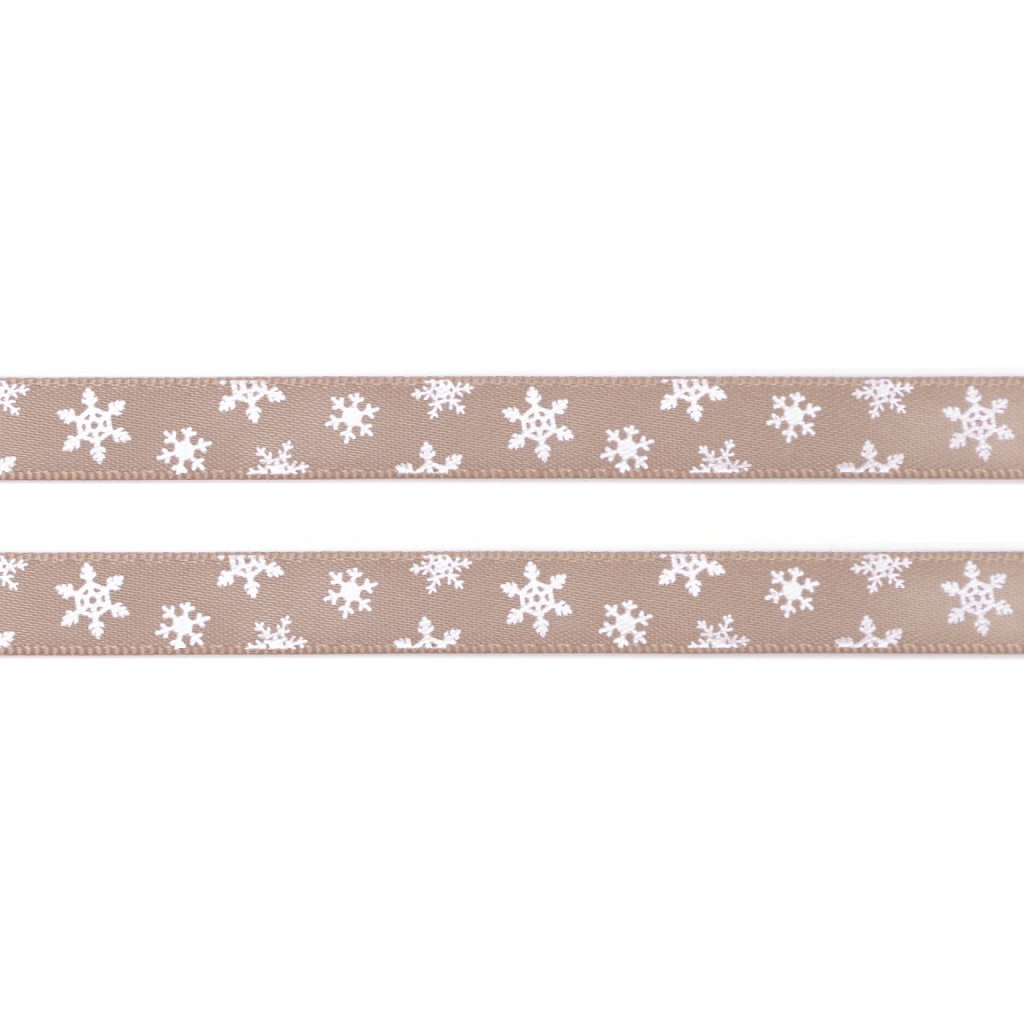 Lesklou atlasovou stuhu zdobí potisk vloček, který je jednostranný.