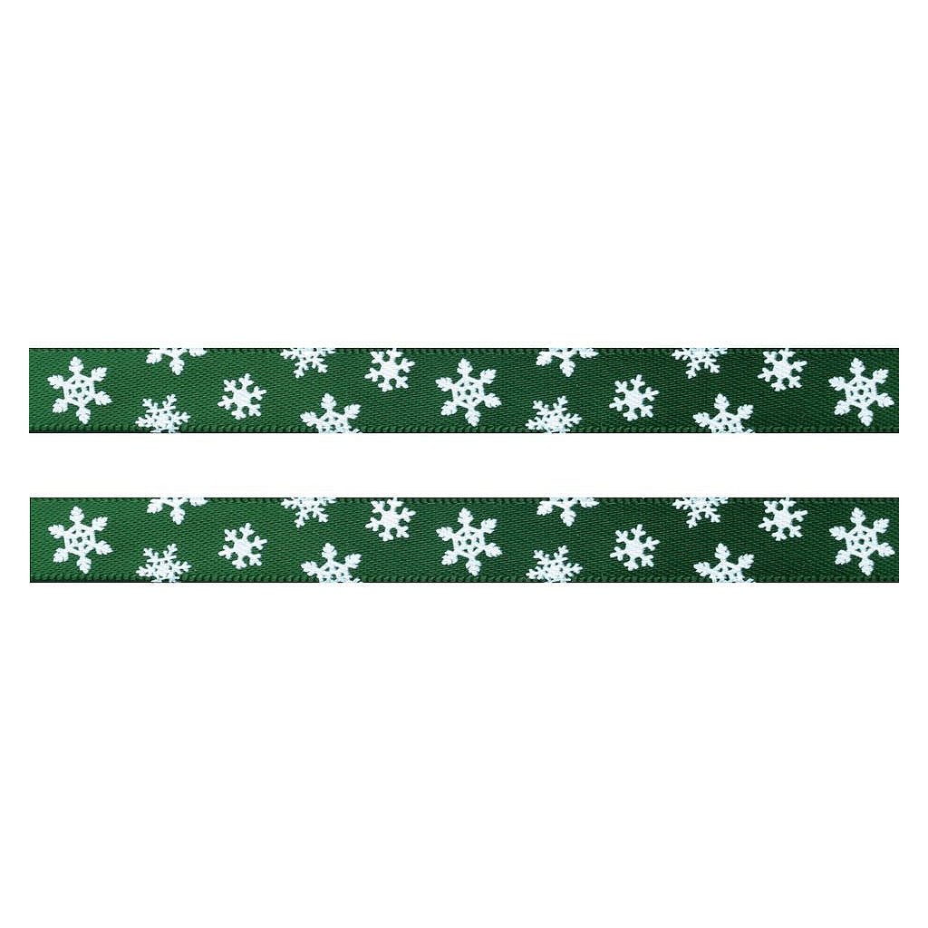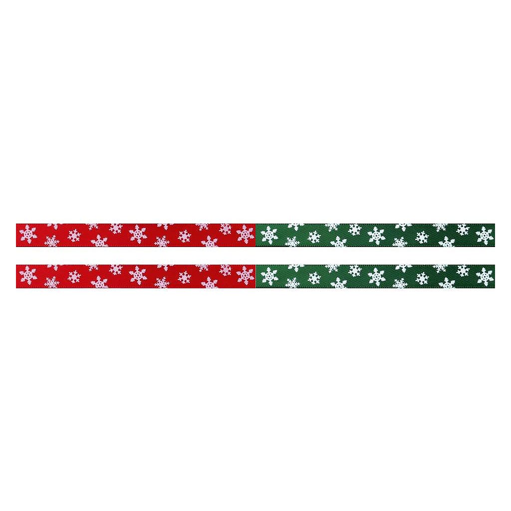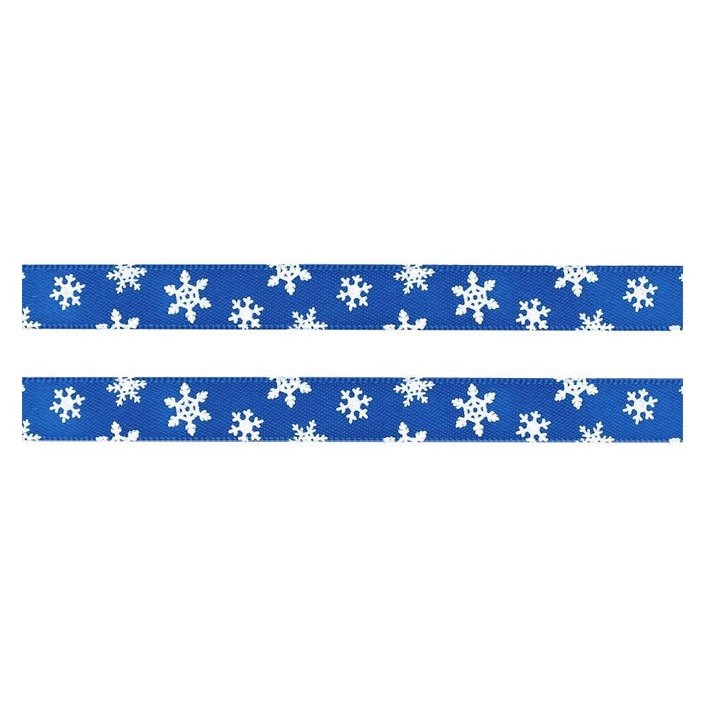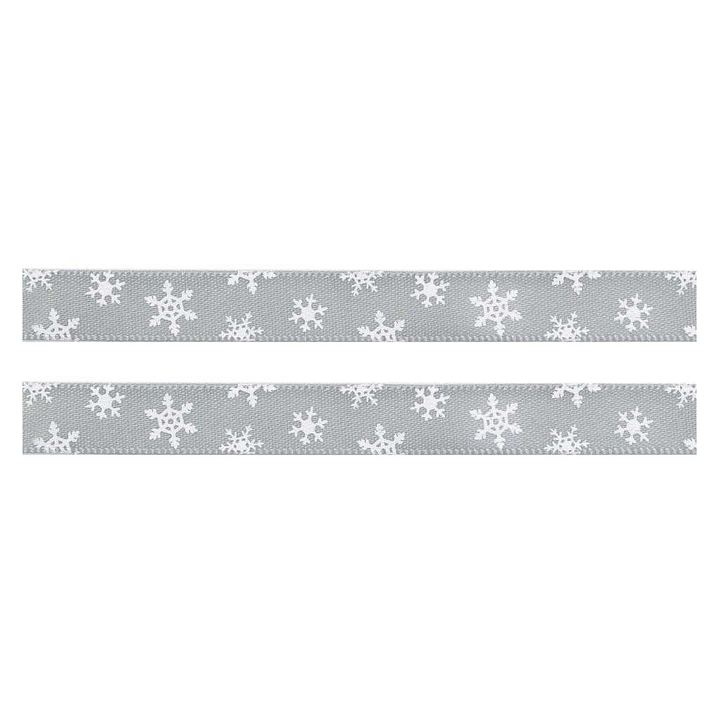 Lesklou atlasovou stuhu zdobí potisk vloček, který je jednostranný.