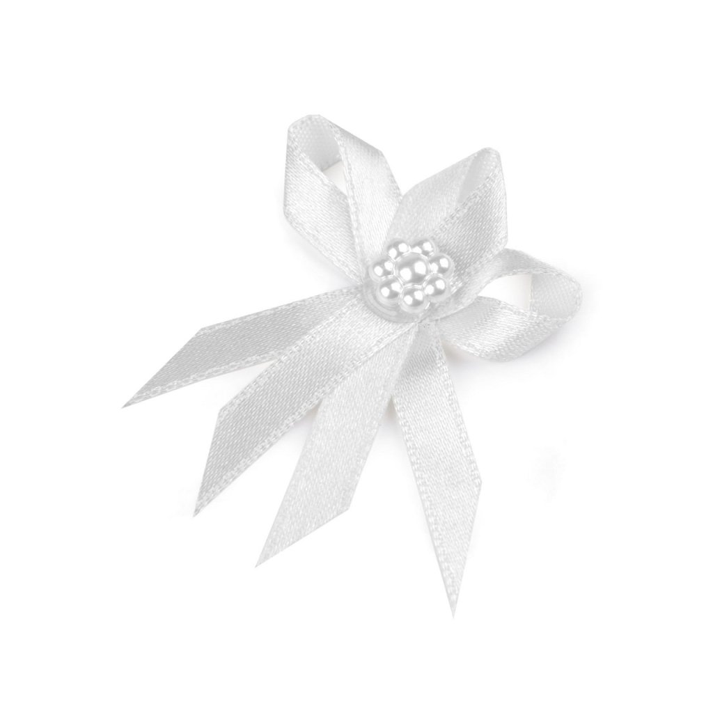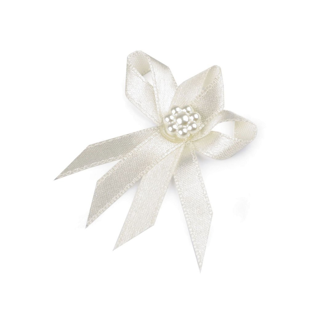 Svatební mašličky slouží ke svatebním účelům. Jsou velice kvalitní, ruční výroby. Skládají se ze dvou saténových stuh o šíři 7 mm, střed mají ozdobený perlovou květinkou. Využijete je k ozdobení klopy ženicha a svatebčanů. Mašličky můžete použít také k aranžování různých svatebních dekorací, k ozdobení svatebních oznámení, pozvánek, krabiček apod.