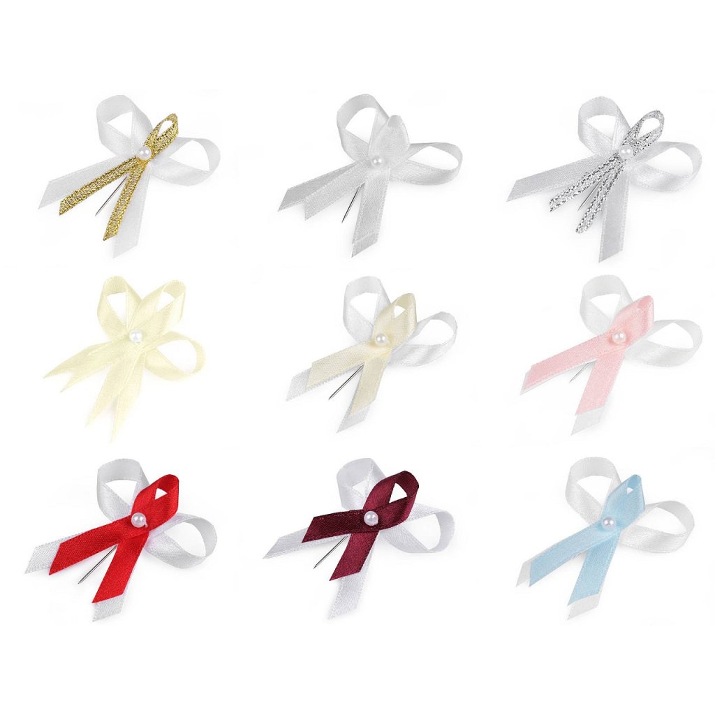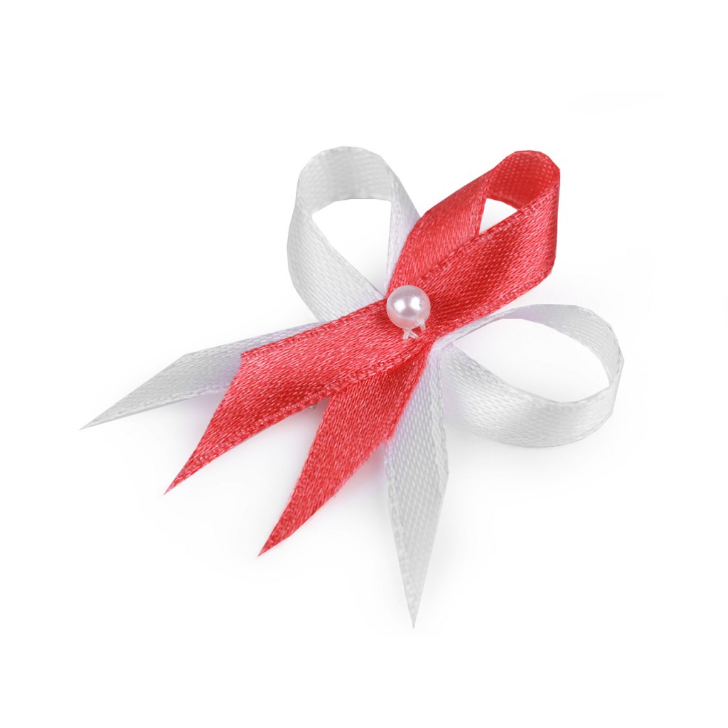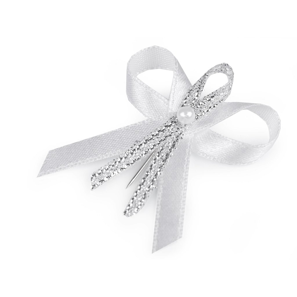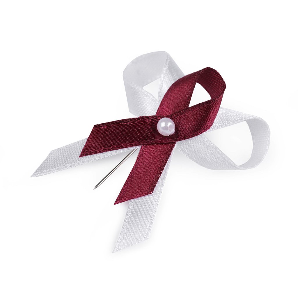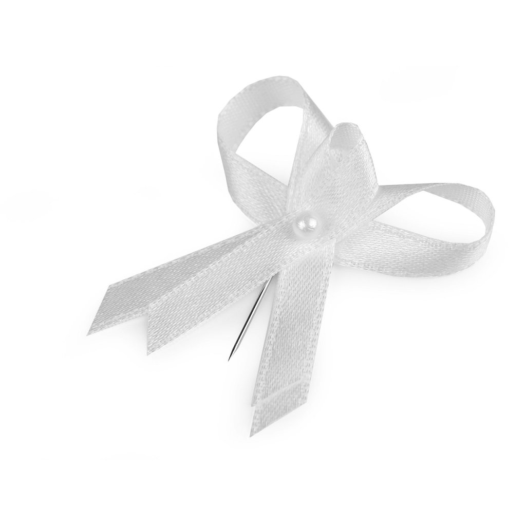 Svatební mašlička slouží ke svatebním účelům. Využijete je k ozdobení klopy ženicha a svatebčanů. Je kvalitní, ručně zpracovaná. Skládá se ze dvou saténových stuh o šíři 6 mm, perličky a špendlíku. Mašličku můžete použít také k aranžování různých svatebních dekorací.
