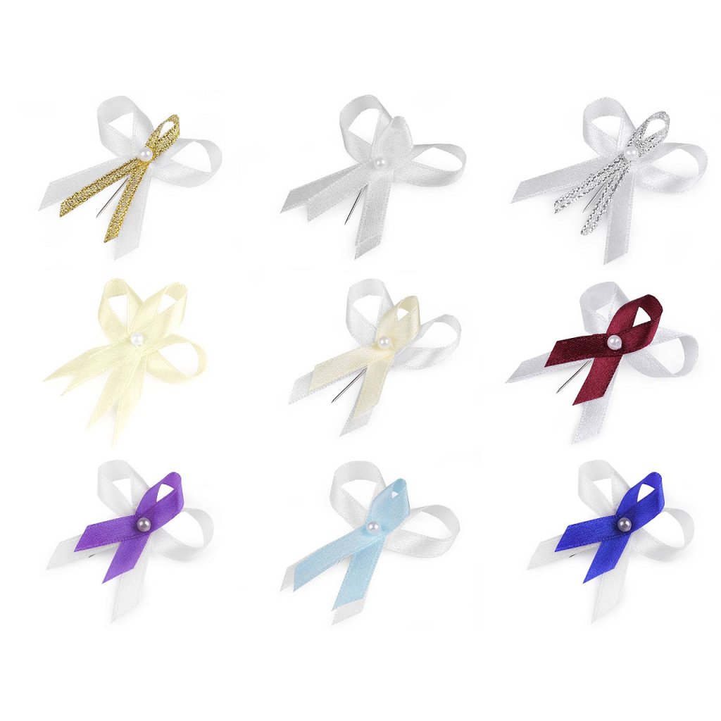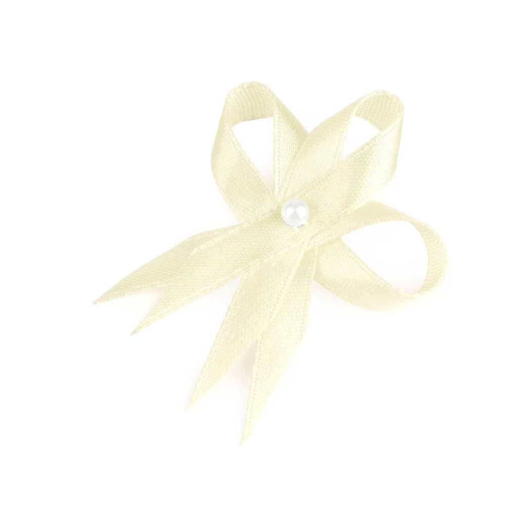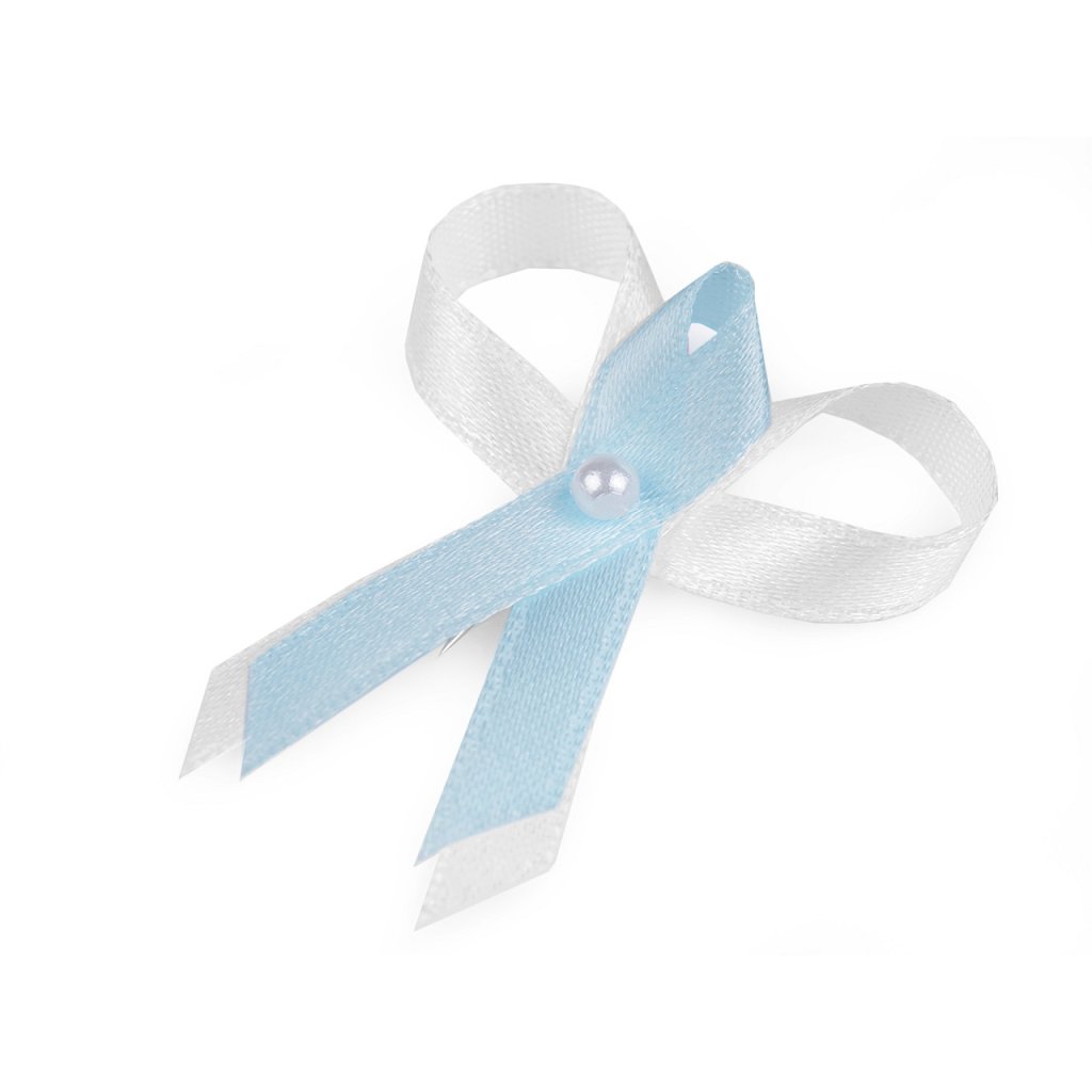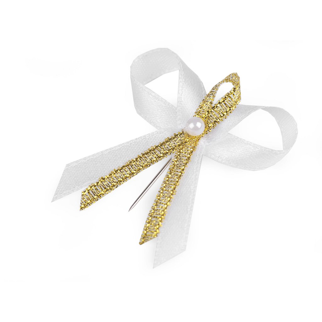 Svatební mašlička slouží ke svatebním účelům. Využijete je k ozdobení klopy ženicha a svatebčanů. Je kvalitní, ručně zpracovaná. Skládá se ze dvou saténových stuh o šíři 6 mm, perličky a špendlíku. Mašličku můžete použít také k aranžování různých svatebních dekorací.