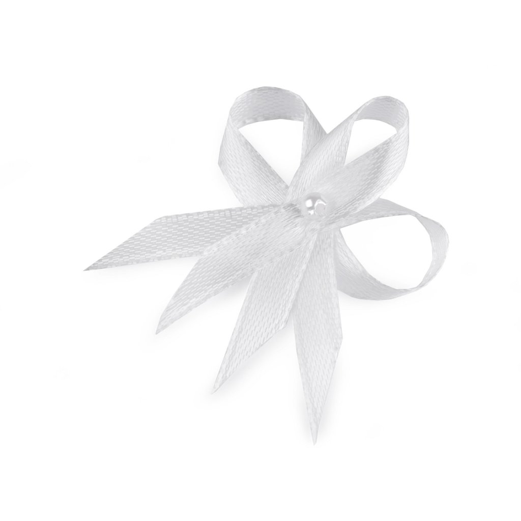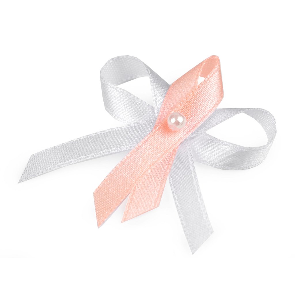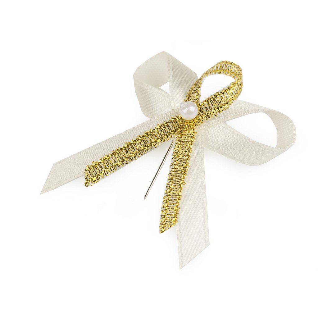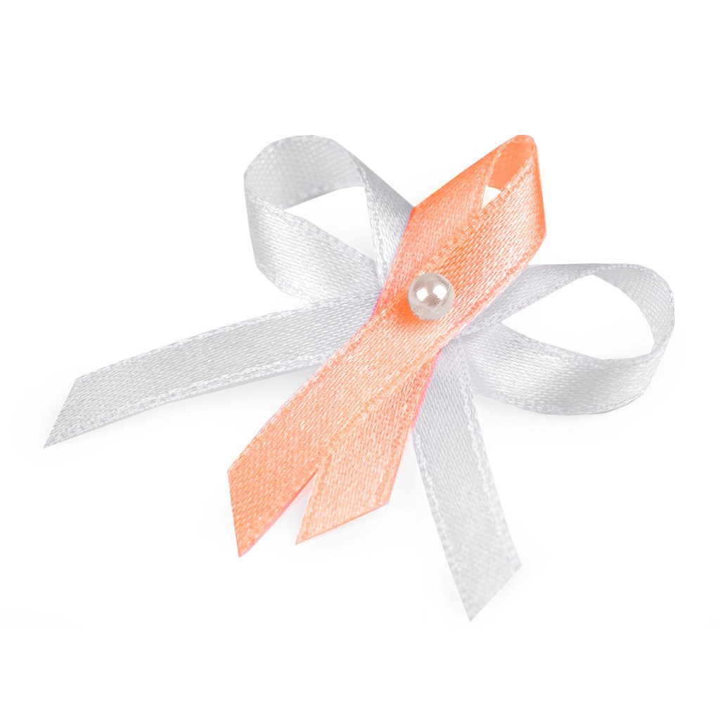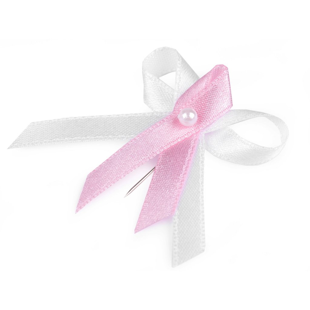 Svatební mašlička slouží ke svatebním účelům. Využijete je k ozdobení klopy ženicha a svatebčanů. Je kvalitní, ručně zpracovaná. Skládá se ze dvou saténových stuh o šíři 6 mm, perličky a špendlíku. Mašličku můžete použít také k aranžování různých svatebních dekorací.