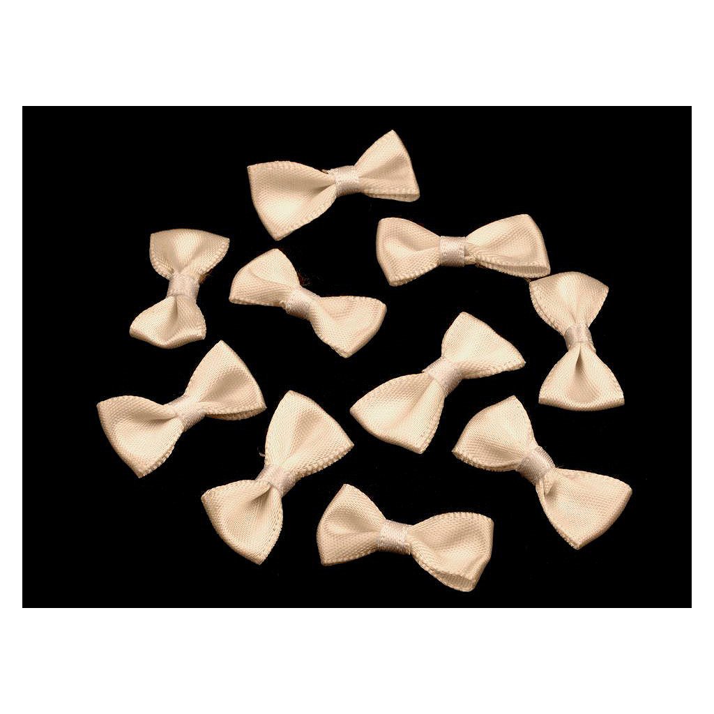 Saténová mašlička je vhodná k našití nebo nalepení. Můžete s ní ozdobit oděvy, podvazky, doplňky, čelenky do vlasů apod. Na některých kusech mohou být na zadní straně u spoje vidět zbytky lepidla.