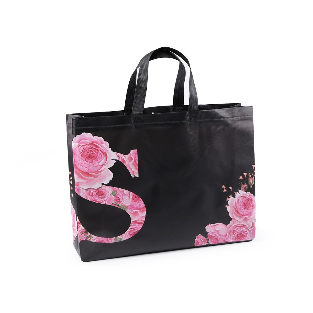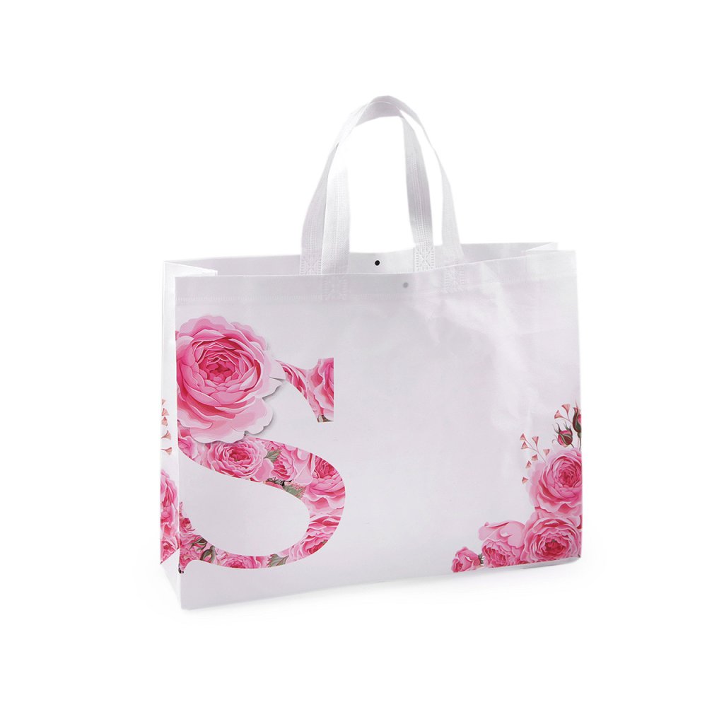Do velké tašky z laminované netkané textilie s potiskem růží naskládáte plno věcí. Má dvě ucha, skvěle se složí třeba do kabelky. Díky opakovanému používání je šetrná k životnímu prostředí, stále častěji nahrazuje igelitové tašky. Hodí se k reklamním účelům. Není určená na těžké nákupy.