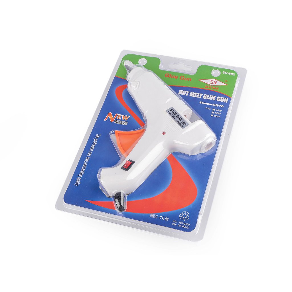 Tavná lepicí pistole pomůže s lepením při různých hobby technikách. Můžete do ní použít lepidlo Ø11 mm. Na konci rukojeti má dvoupolohový přepínač, kterým se pistole zapne a vypne. Pistole se zapojuje do elektřiny. Při práci s ní zacházejte opatrně, protože její tryska je horká. Rozehřátou pistoli odkládejte na stojánek umístěný v její přední části. Lepte pouze s dobře rozehřátou pistolí, pokud není lepidlo tekuté, může při tlačení na píst dojít k jejímu poškození.