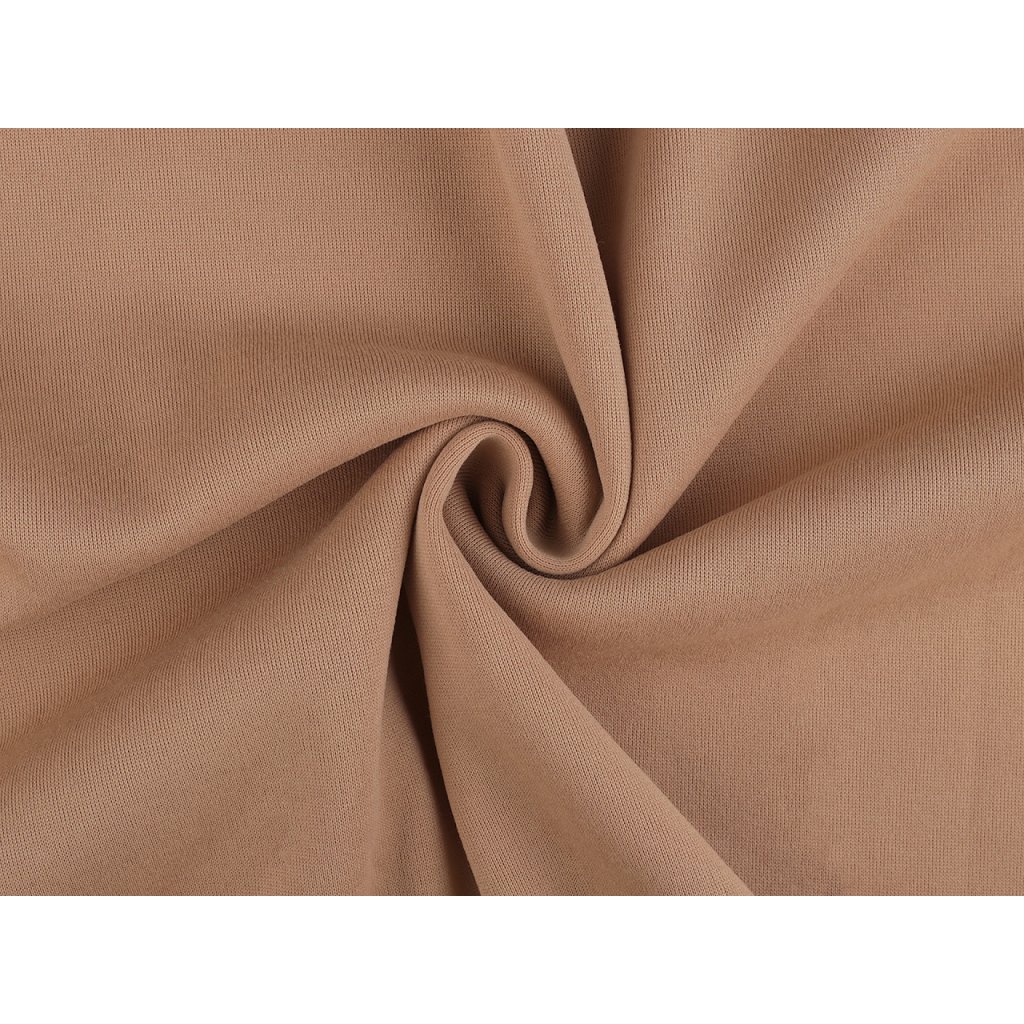 Počesaná teplákovina se díky hřejivé rubové straně skvěle hodí na šití podzimních a zimních věcí - mikin, vest, kardiganů, šatů, tepláků, čepic, nákrčníků apod. Pruží všemi směry.