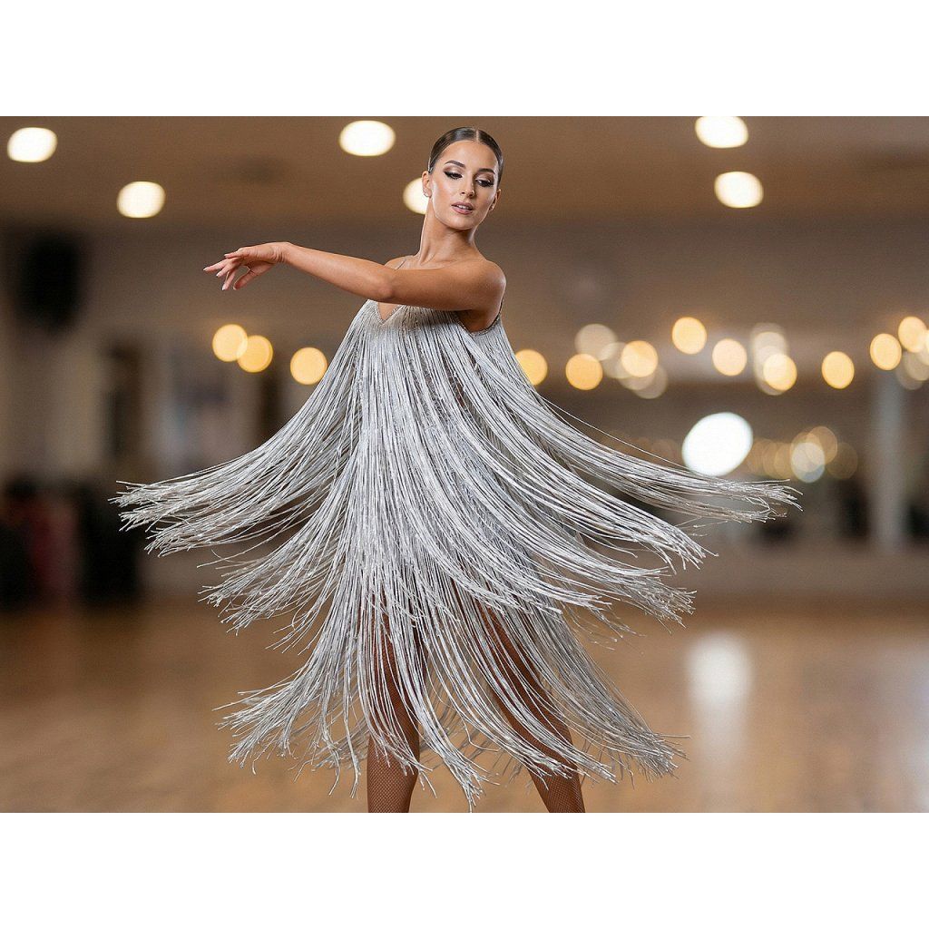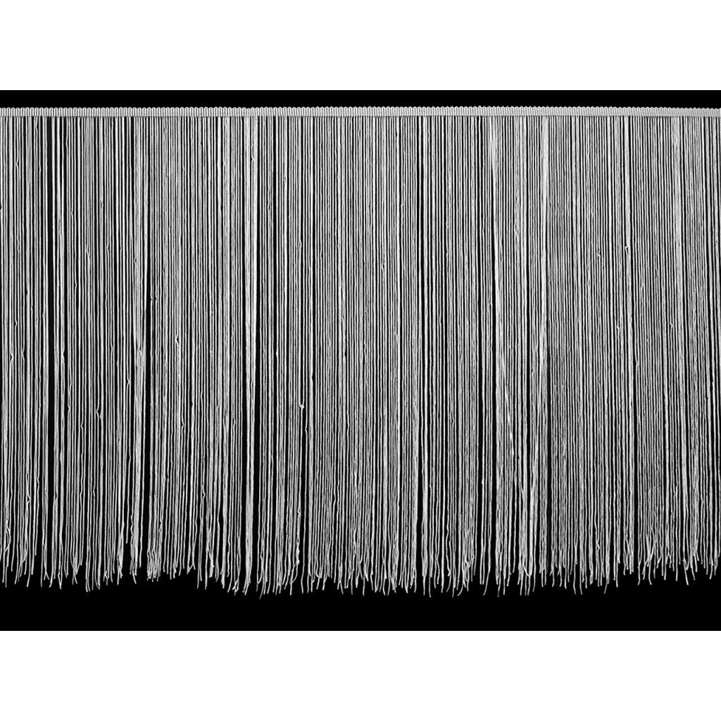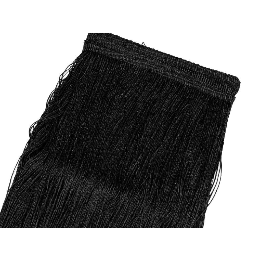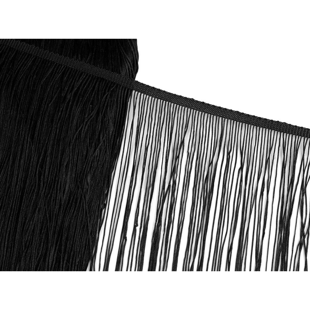 Ozdobné extra dlouhé třásně jsou několikrát prošité fixační nití, aby se nezamotaly. Po našití nit odstraňte. Díky délce třásně využijete na šití tanečních kostýmů, šatů, sukní nebo závěsů.