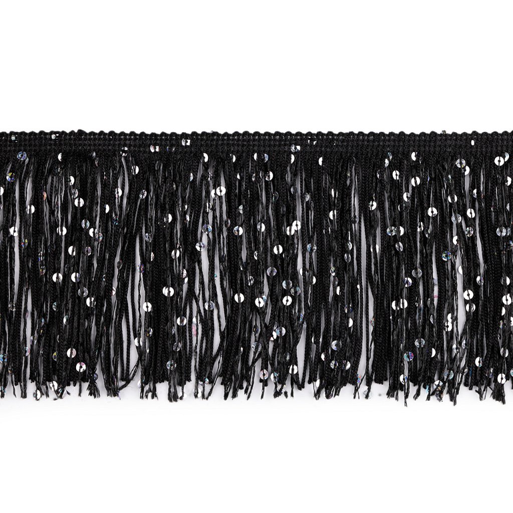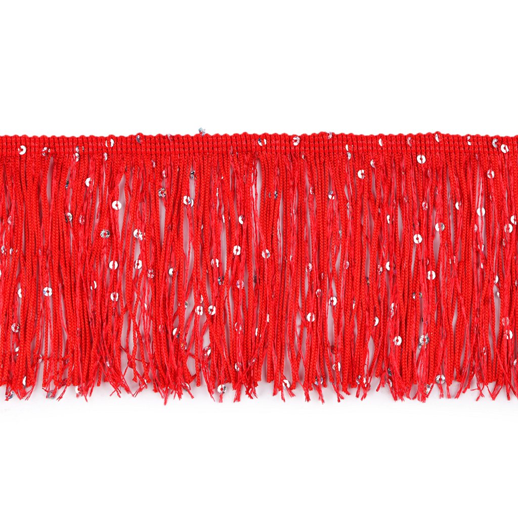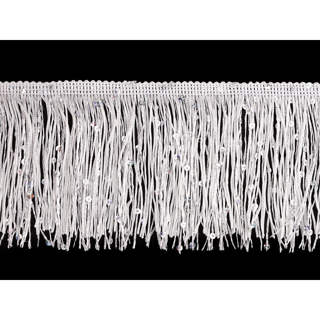 Třásně efektně kopírují každý pohyb, proto se hodí k šití karnevalových, divadelních a hlavně tanečních kostýmů. Vyniknou i na večerních a společenských šatech. Zdobí je třpytivé flitry.