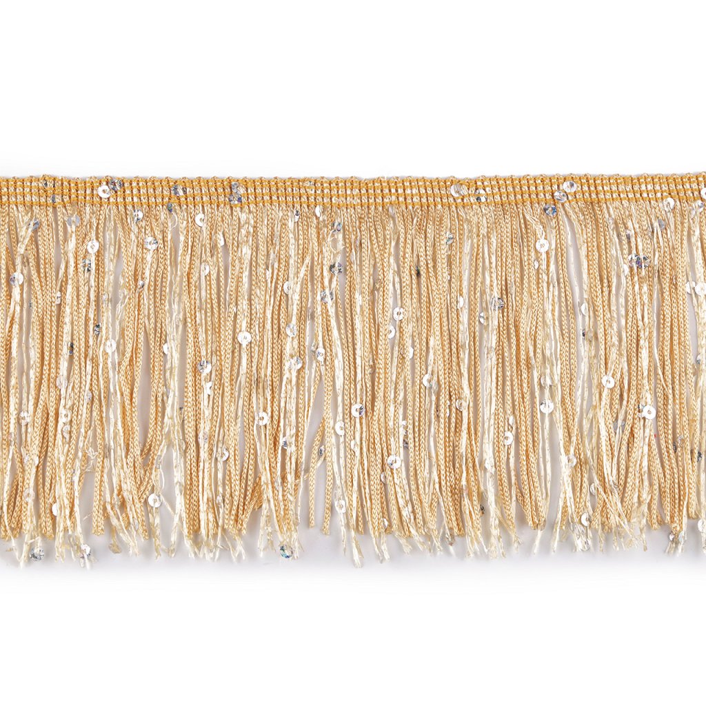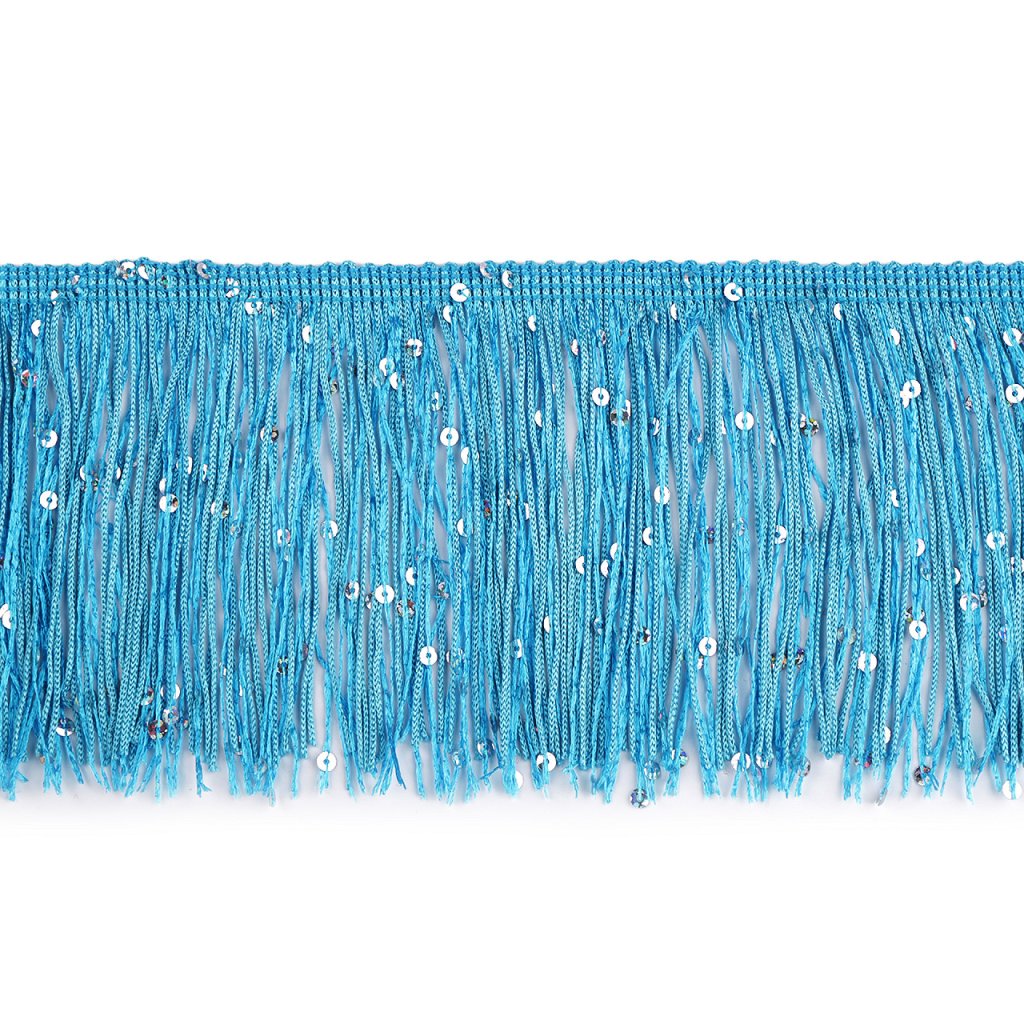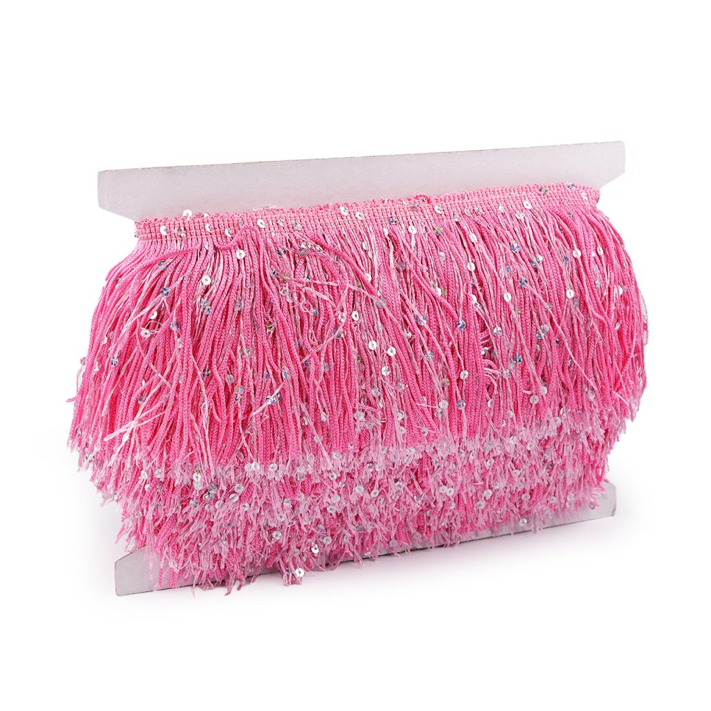 Třásně efektně kopírují každý pohyb, proto se hodí k šití karnevalových, divadelních a hlavně tanečních kostýmů. Vyniknou i na večerních a společenských šatech. Zdobí je třpytivé flitry.