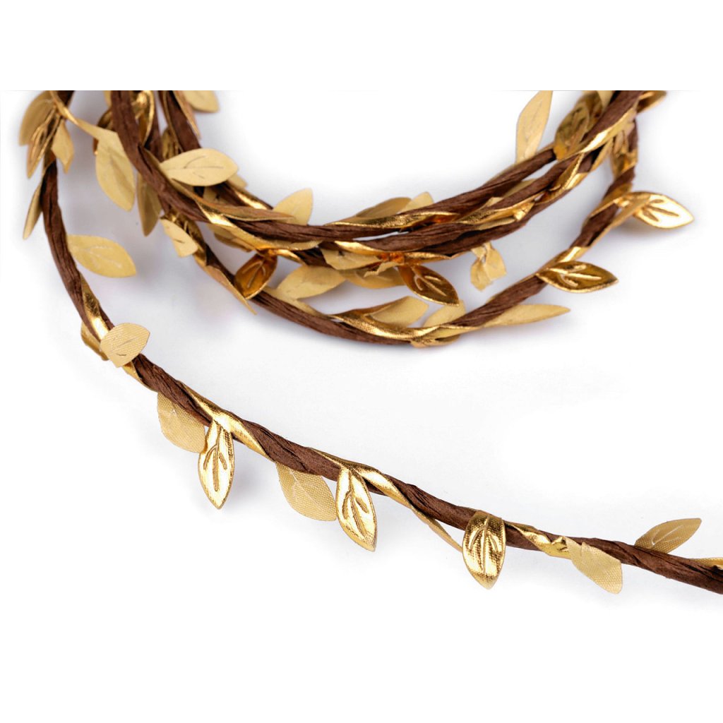 Tvarovací drát, obalený papírem, je pevný, ale zároveň se velmi dobře tvaruje. Po celé své délce je propletený zlatým prýmkem s listy.