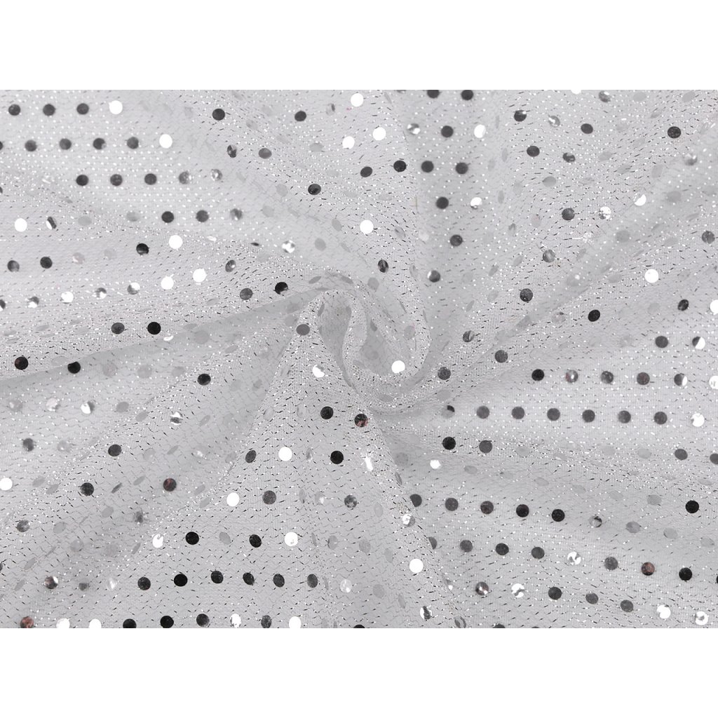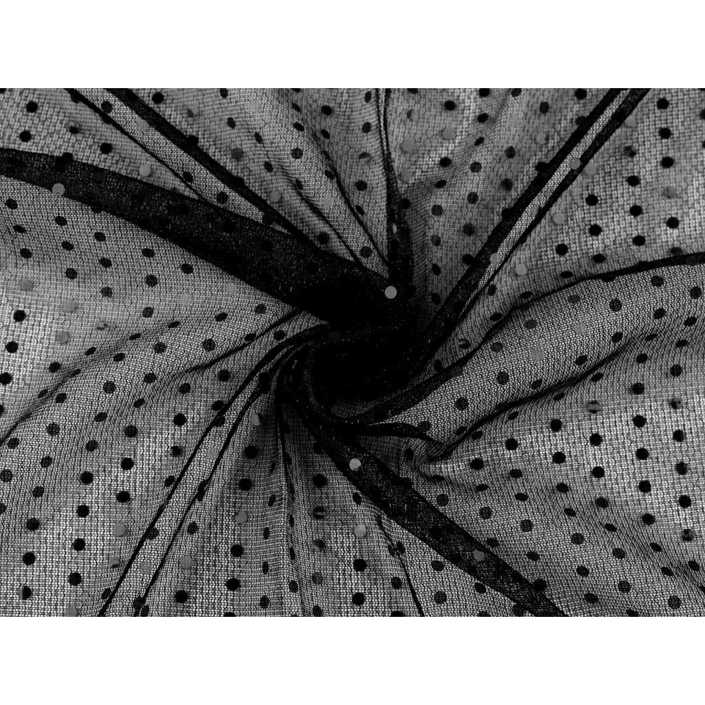 Flitrový úplet je jemný, protkaný lurexem a krásně splývá. Využijete ho na karnevalové kostýmy, párty doplňky, šití sukýnek apod. Flitry z něj neopadávají.