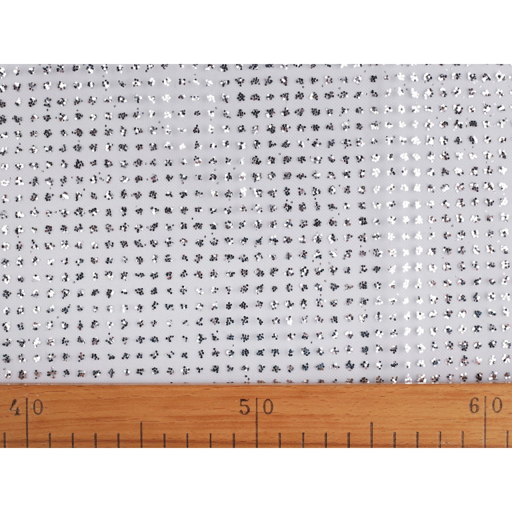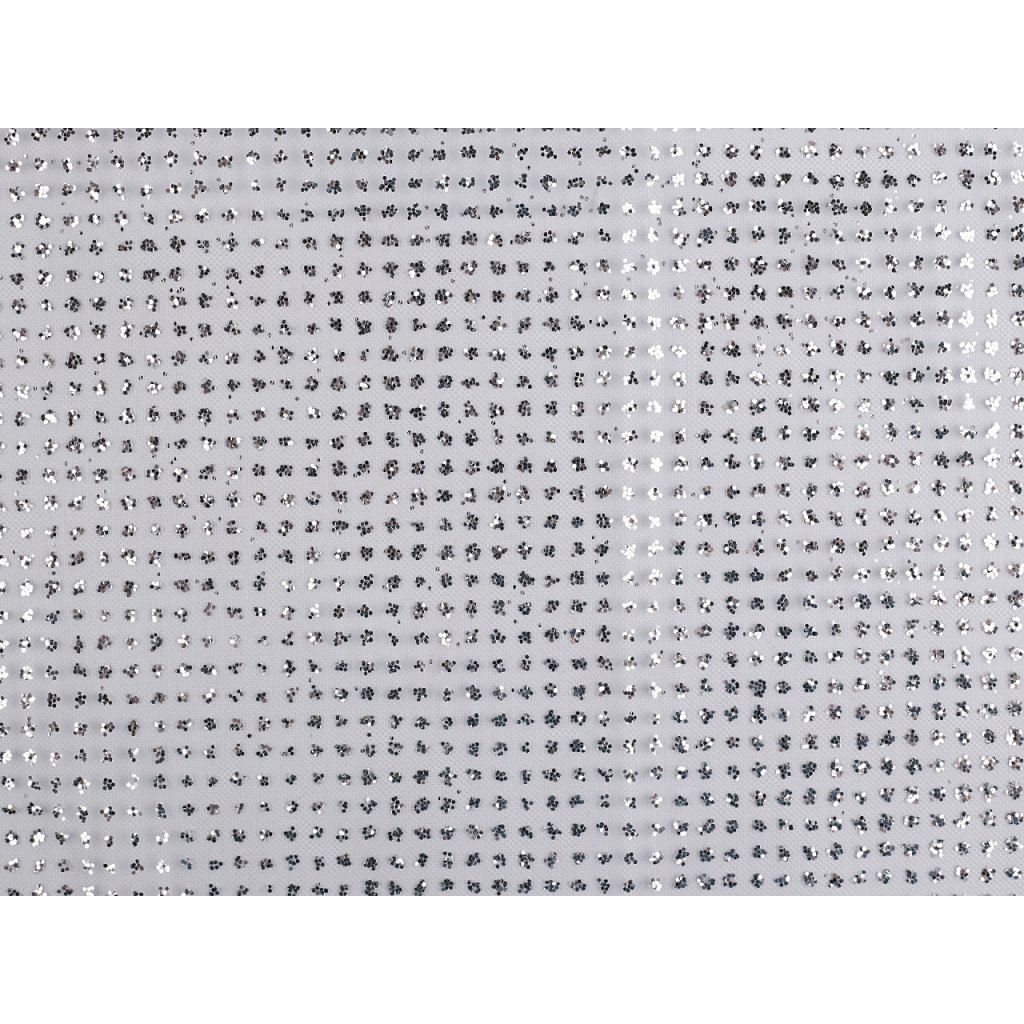 Tyl zdobí drobné puntíky ze třpytivých glitrů, které mají Ø3 - 4 mm. Využijete ho na karnevalové kostýmy, párty doplňky, sukýnky apod.